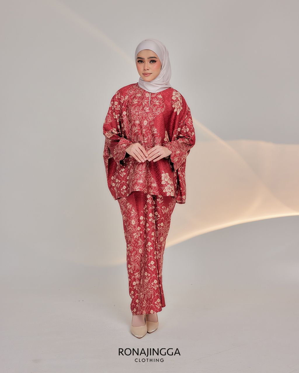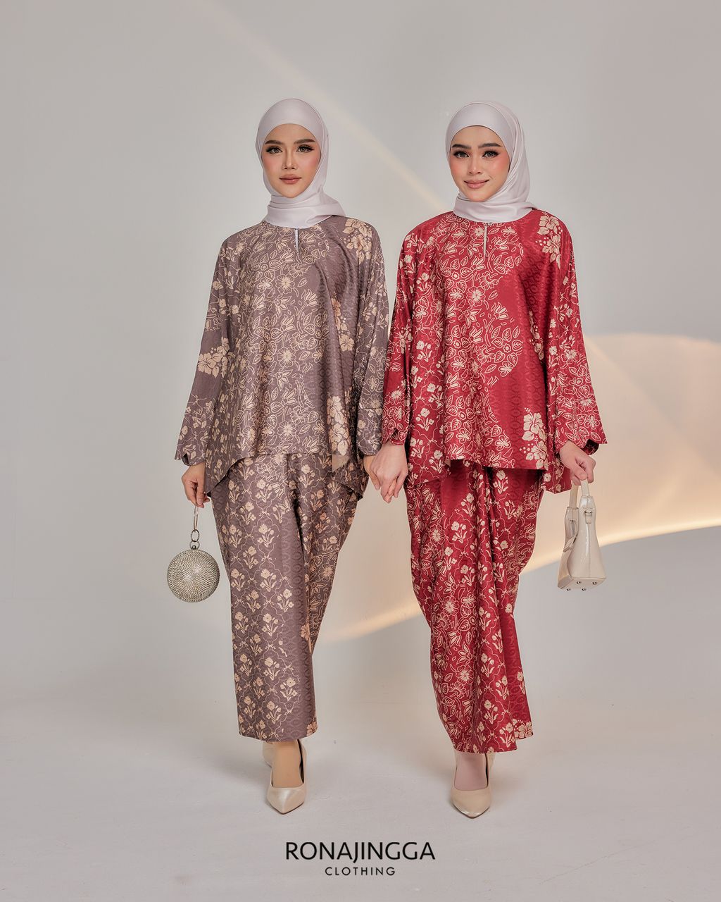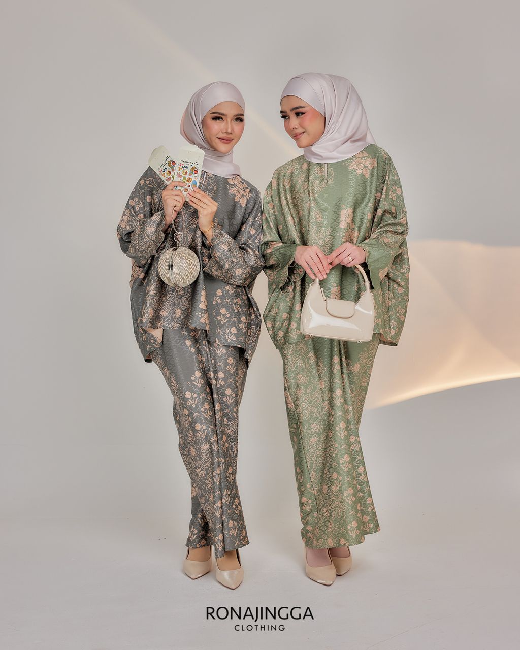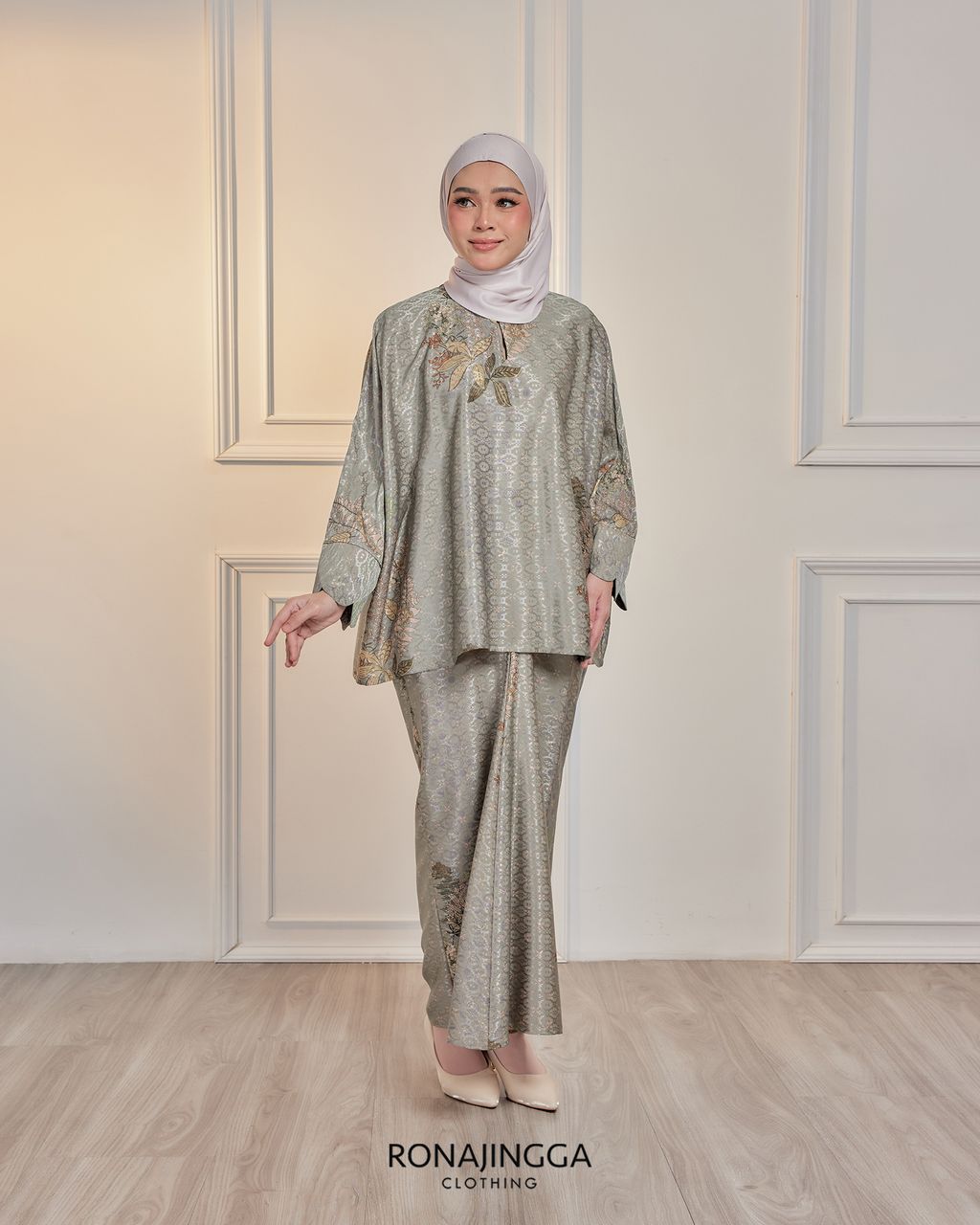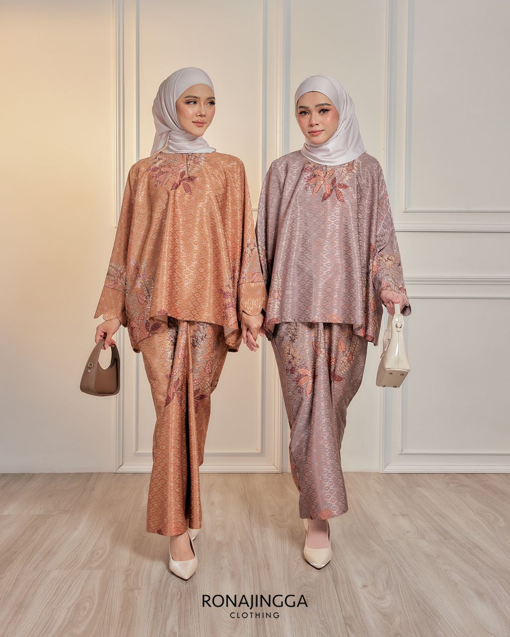 It is a loose, elegant and minimal baggy kurung made from High Quality Premium Dobby Silk Songket that is Soft, Cooling & Flowy with wuduk friendly wide sleeves with cute scallop design , that fits nicely on any body shape and cooling to wear from day to night. The top is a loose baggy top that can even be easily pulled up for breastfeeding and comfortably loose enough for preggy mommy.