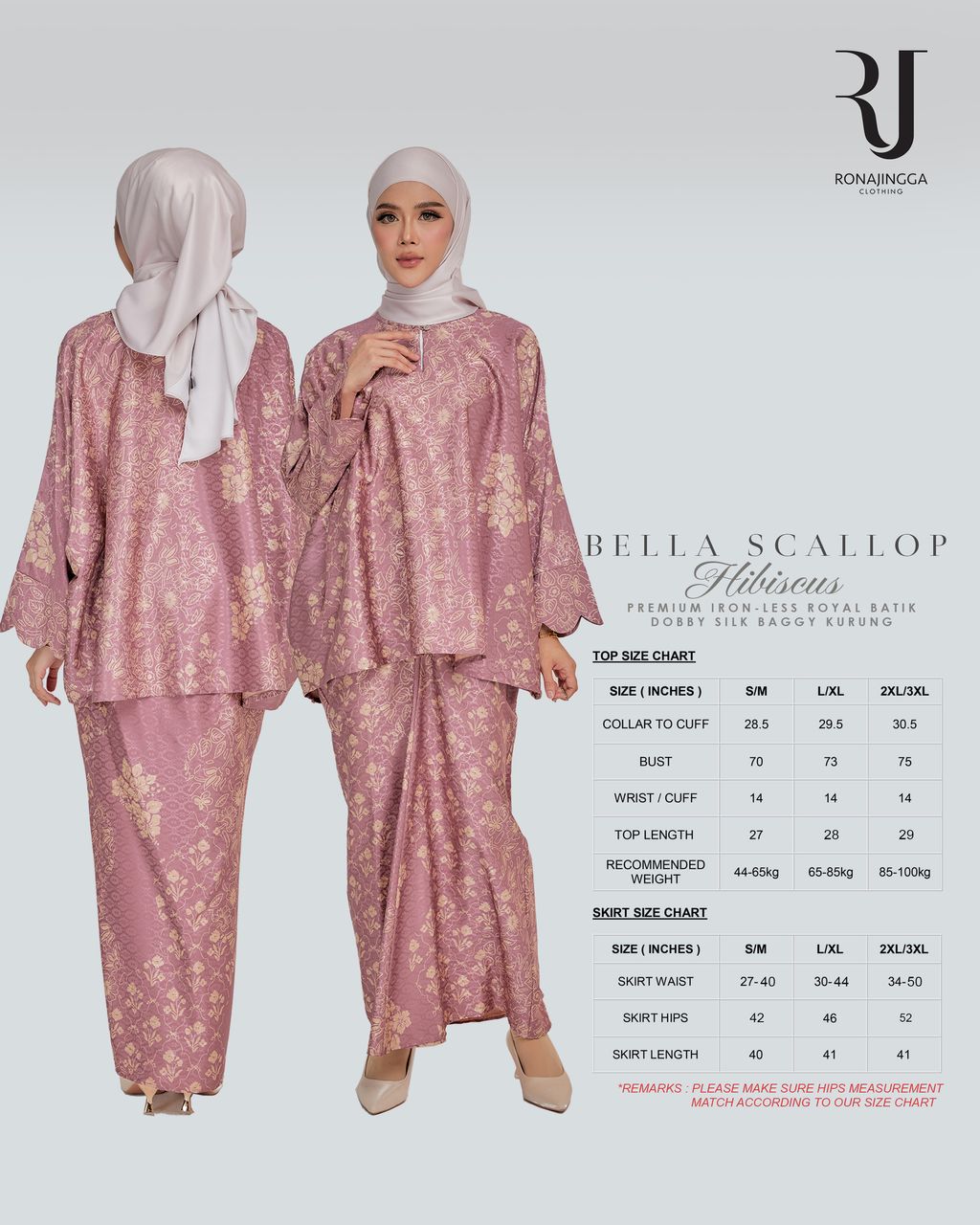BELLA SCALLOP Premium Iron-less Printed Baggy Kurung