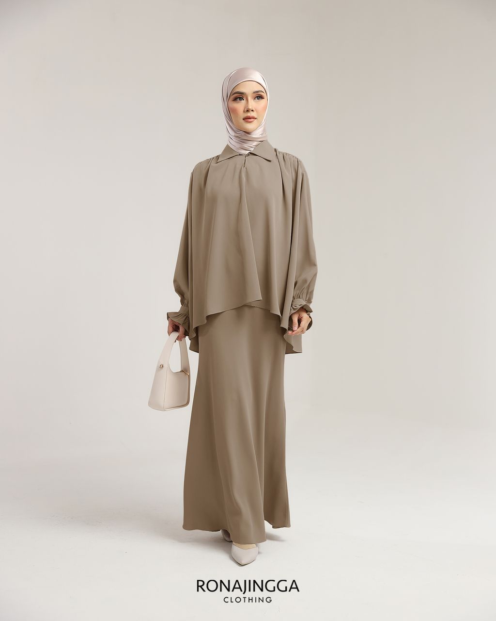 It is loose , comfortable set made from High Quality Premium Soft Poly Cotton that is cooling and comfy. The loose cut specially designed to give a slimming effect look. Plus, the gathered sleeves design with functional buttoned cuffs is wuduk & dish washing freindly. The top with smart colar is a loose baggy top design with gathered detailing, can even be easily pulled up for breastfeeding / be worn as maternity wear.