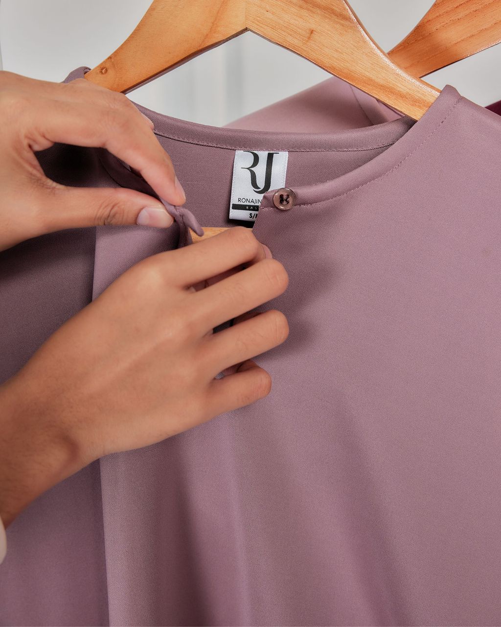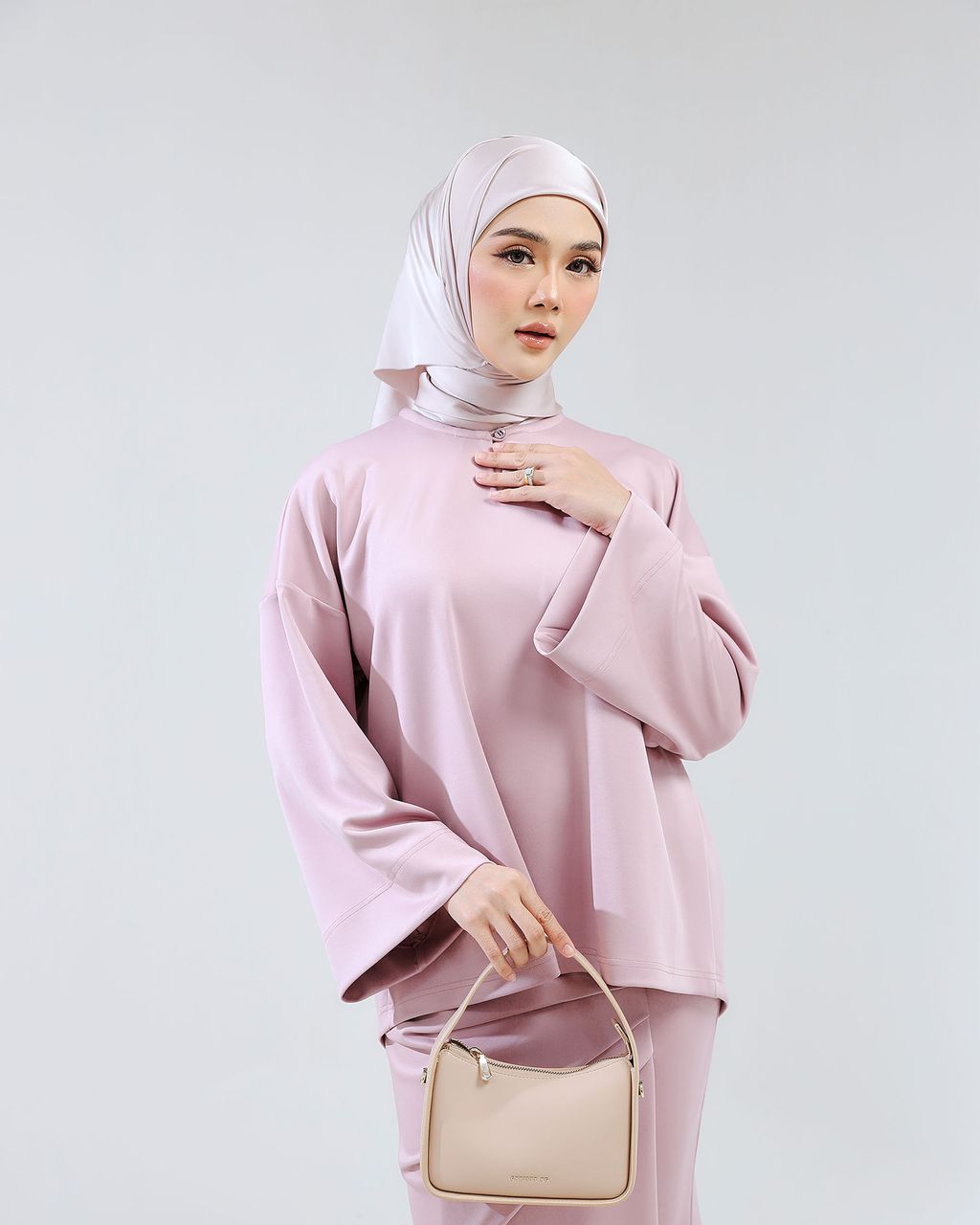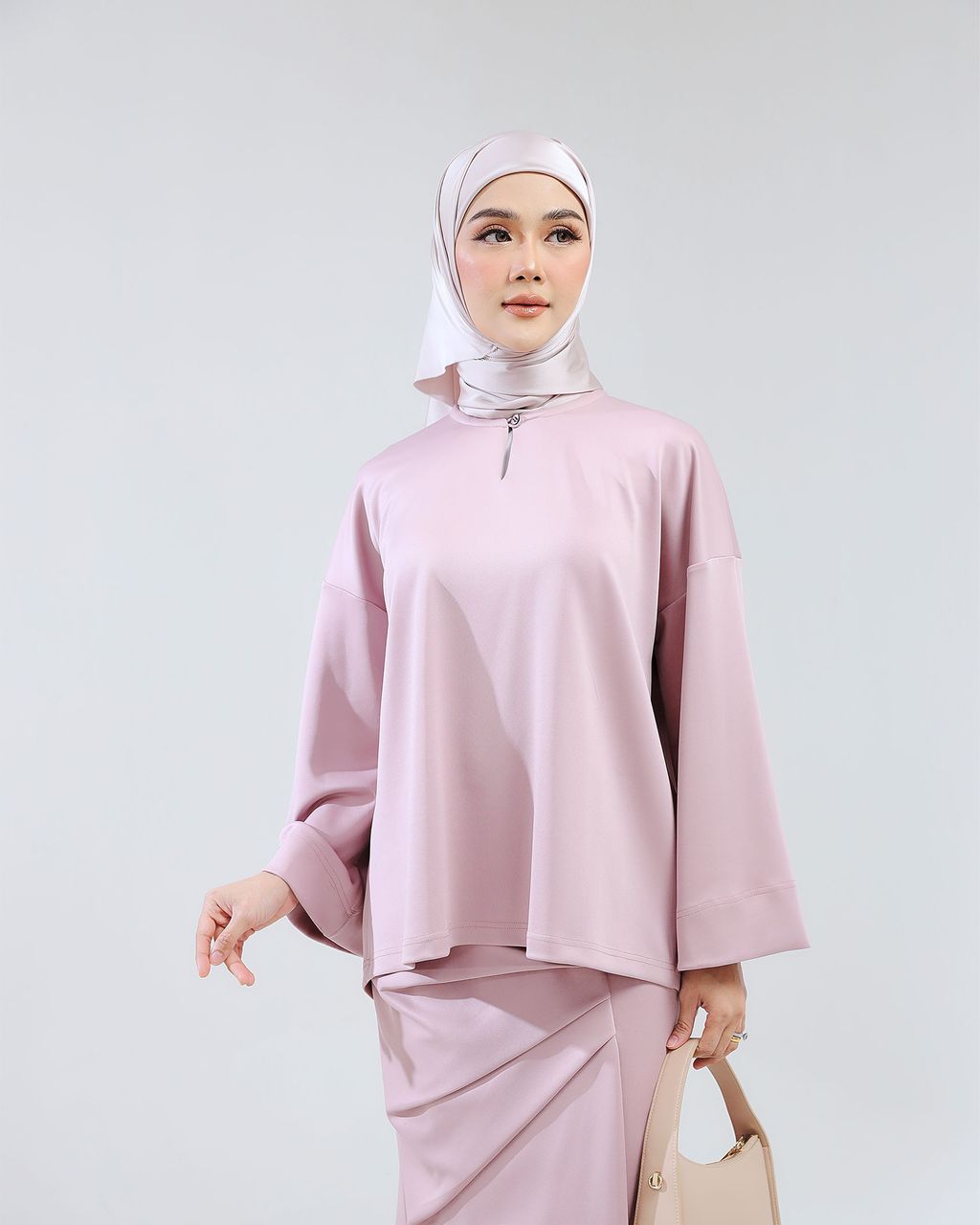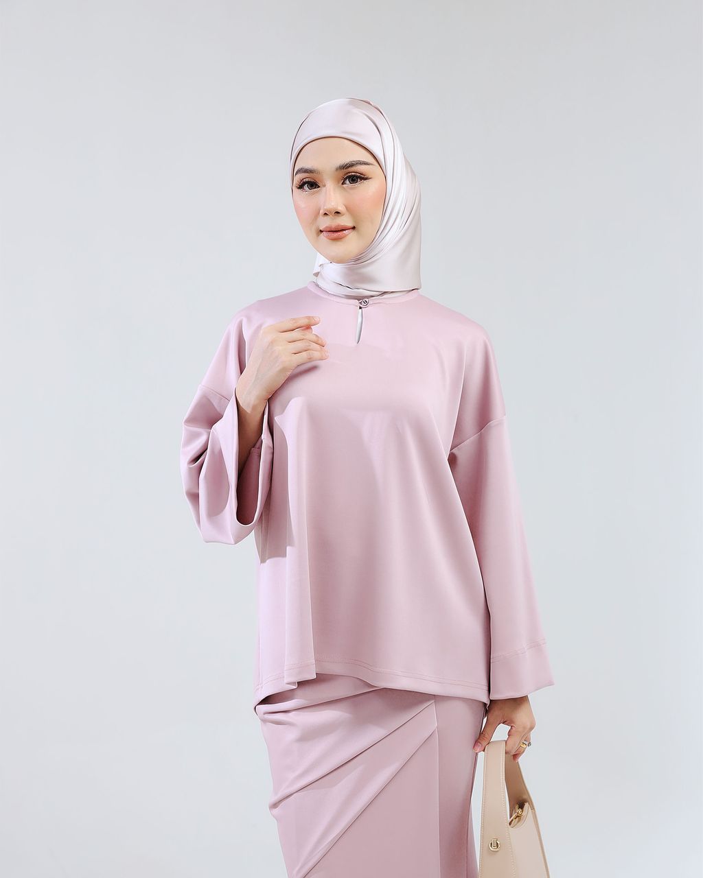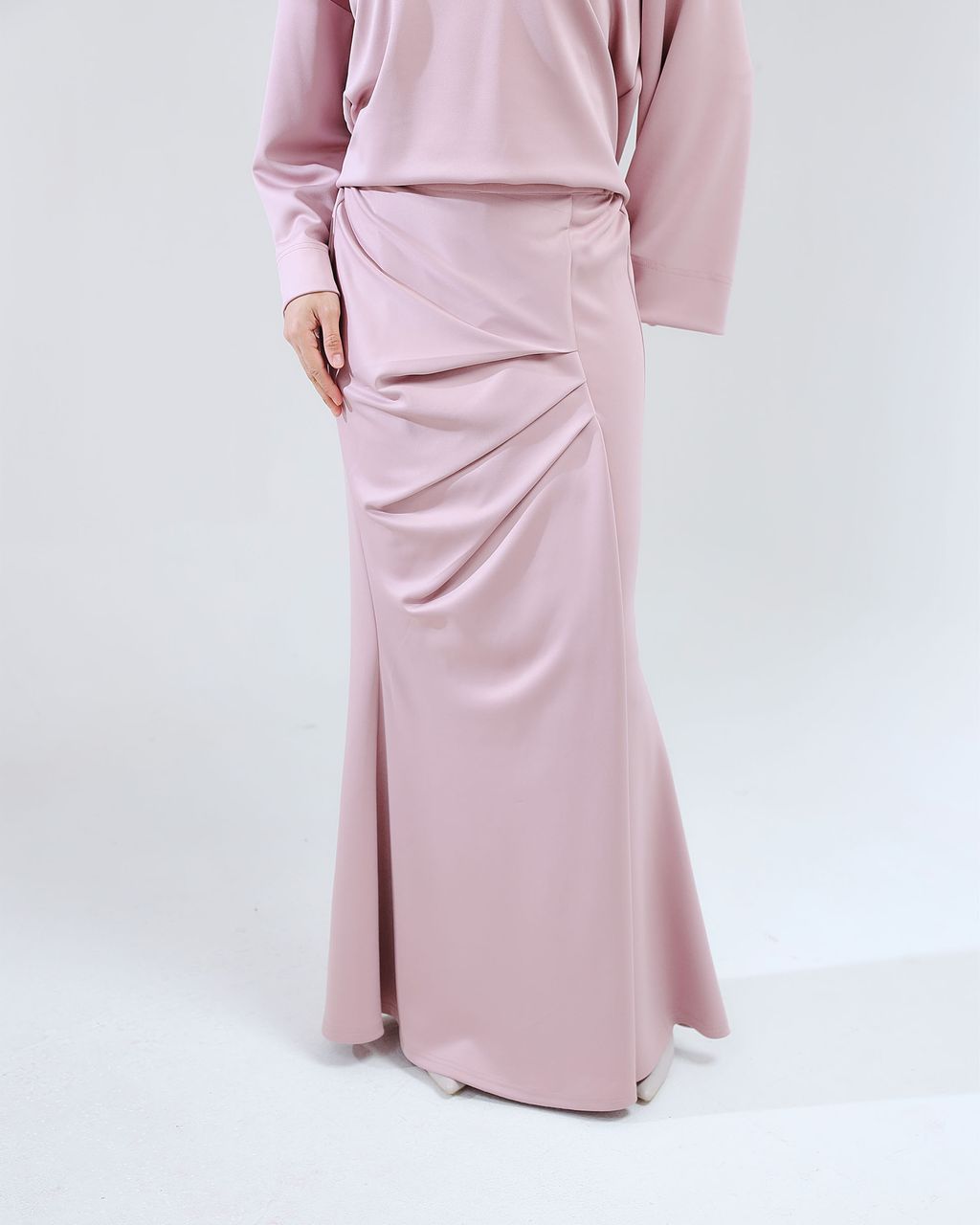 The top is a loose kedah cut top with wide wuduk friendly sleeves design that can even be easily pulled up for breastfeeding and comfortably loose enough for preggy mommy. Thus, the unique cut instant pleated skirt design gives a stylish look and comfortably easy to move without showing off your feet.