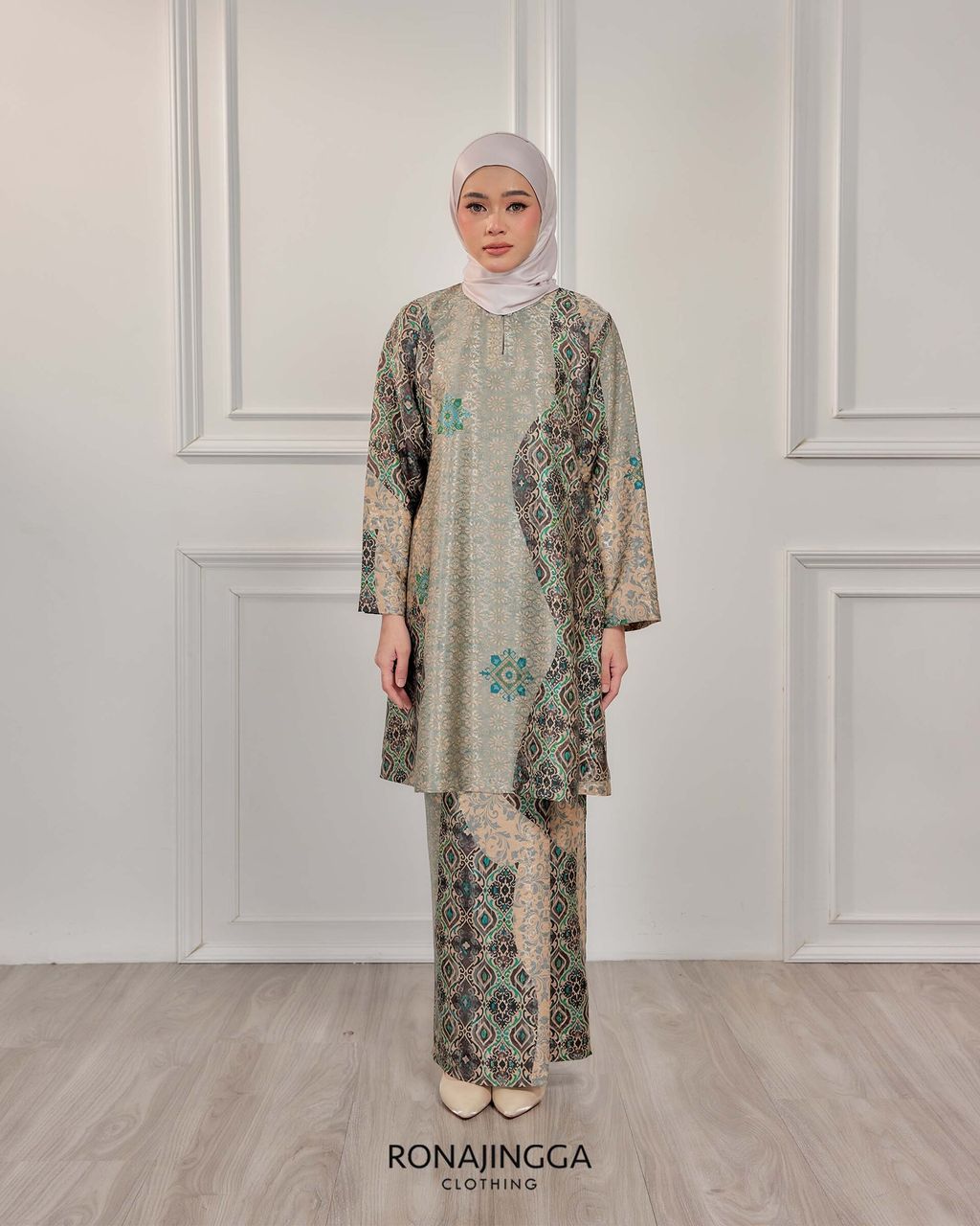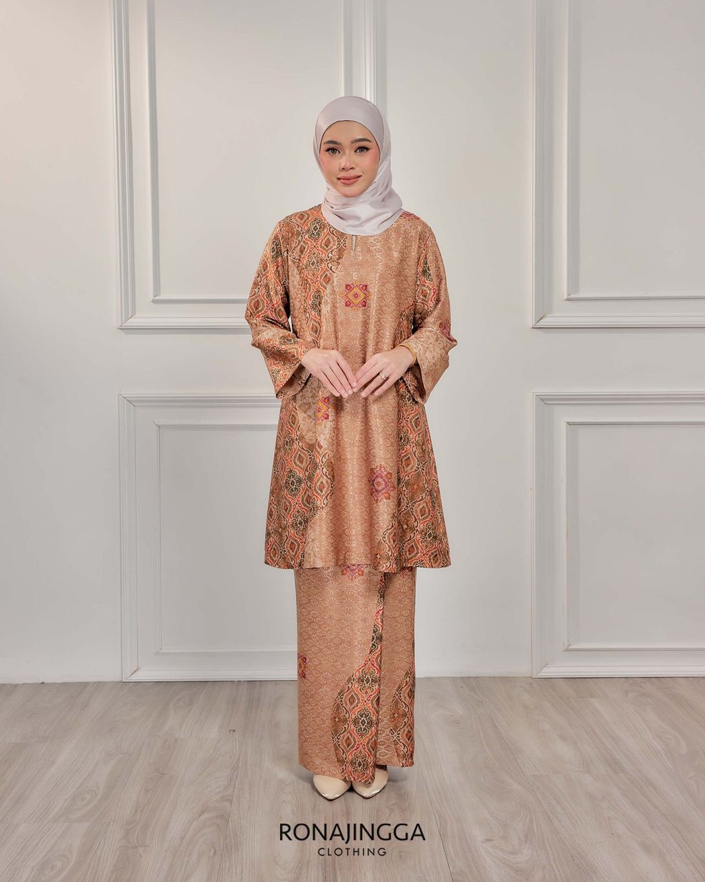 A premium losse, elegant, iron-less Kurung Pahang that is suitable for events or work. It is a modest elegant look kurung that fits nicely on any body shape. The top is a loose long top that is comfortably loose enough for preggy mommy. Featuring, wide sleeves design that is wuduk friendly. It is an easy wear loose kurung