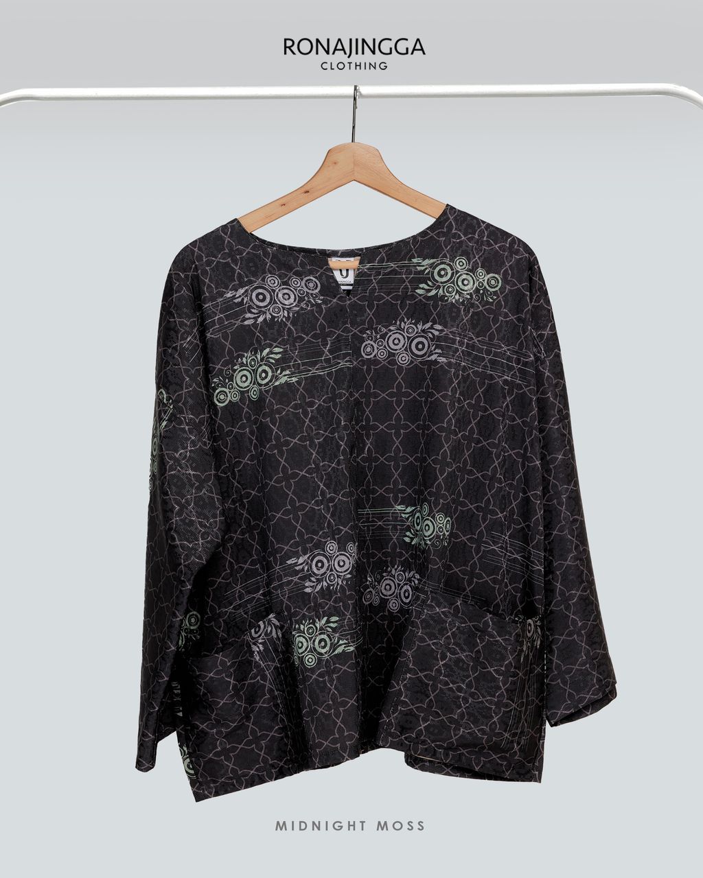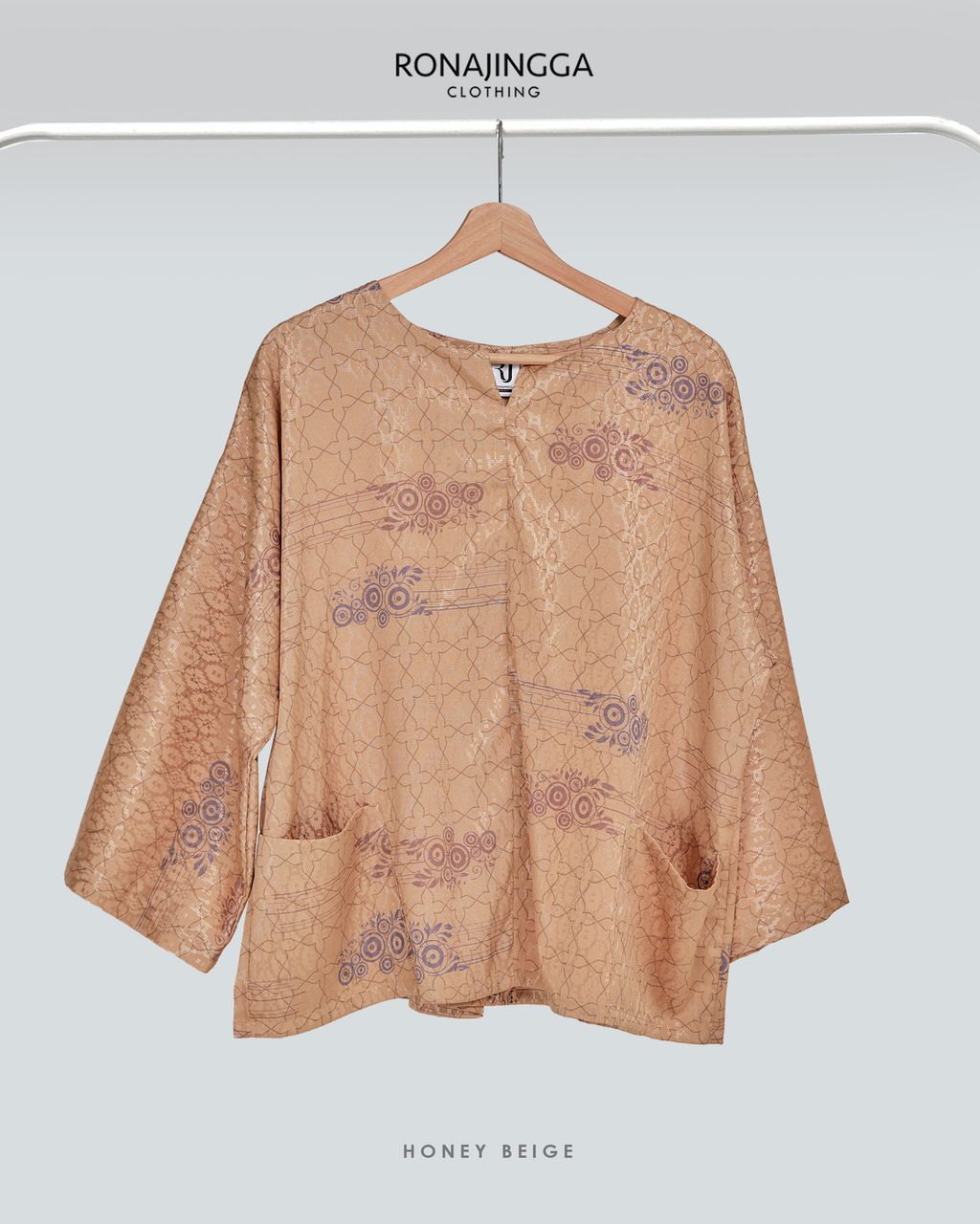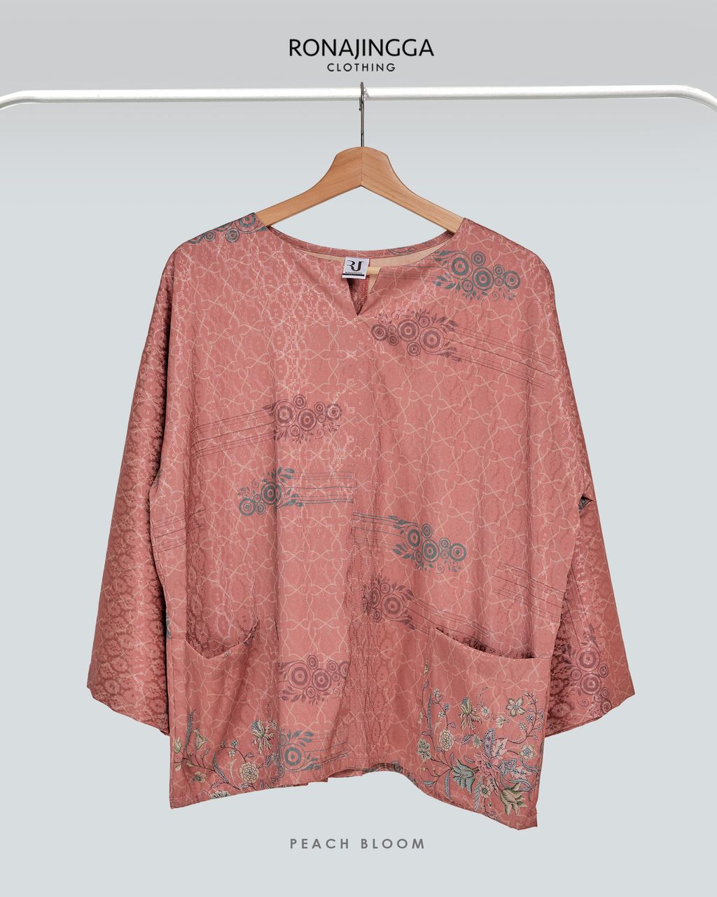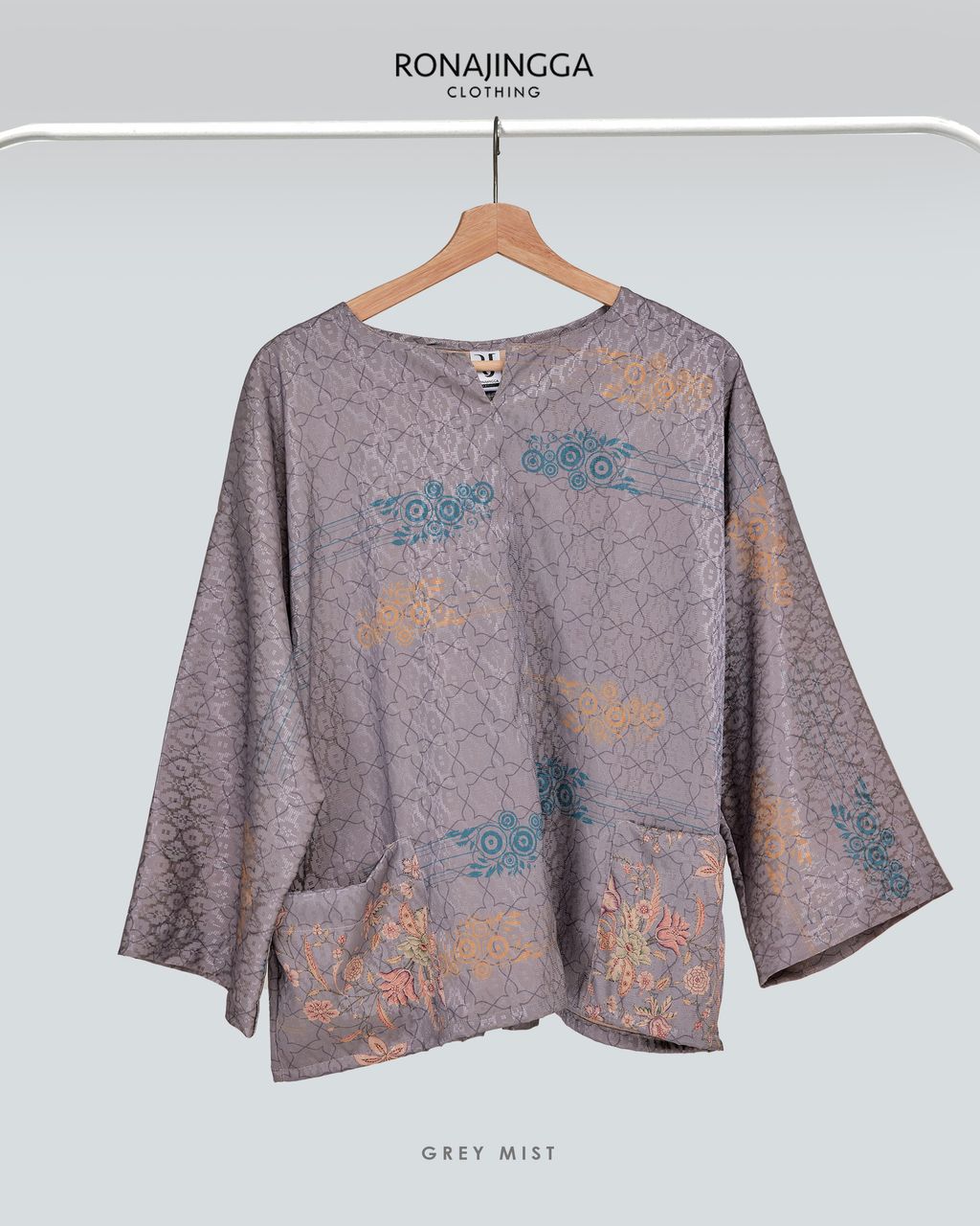 A premium super comfortable loose kedah cut top with 2 front pockets made from High Quality Premium Printed dobby & jacquard Silk that fits nicely on any body shape. The sleeves are wuduk' and dish washing friendly . It is a loose fit blouse that can be easily pulled up for breastfeeding / be worn as maternity wear.