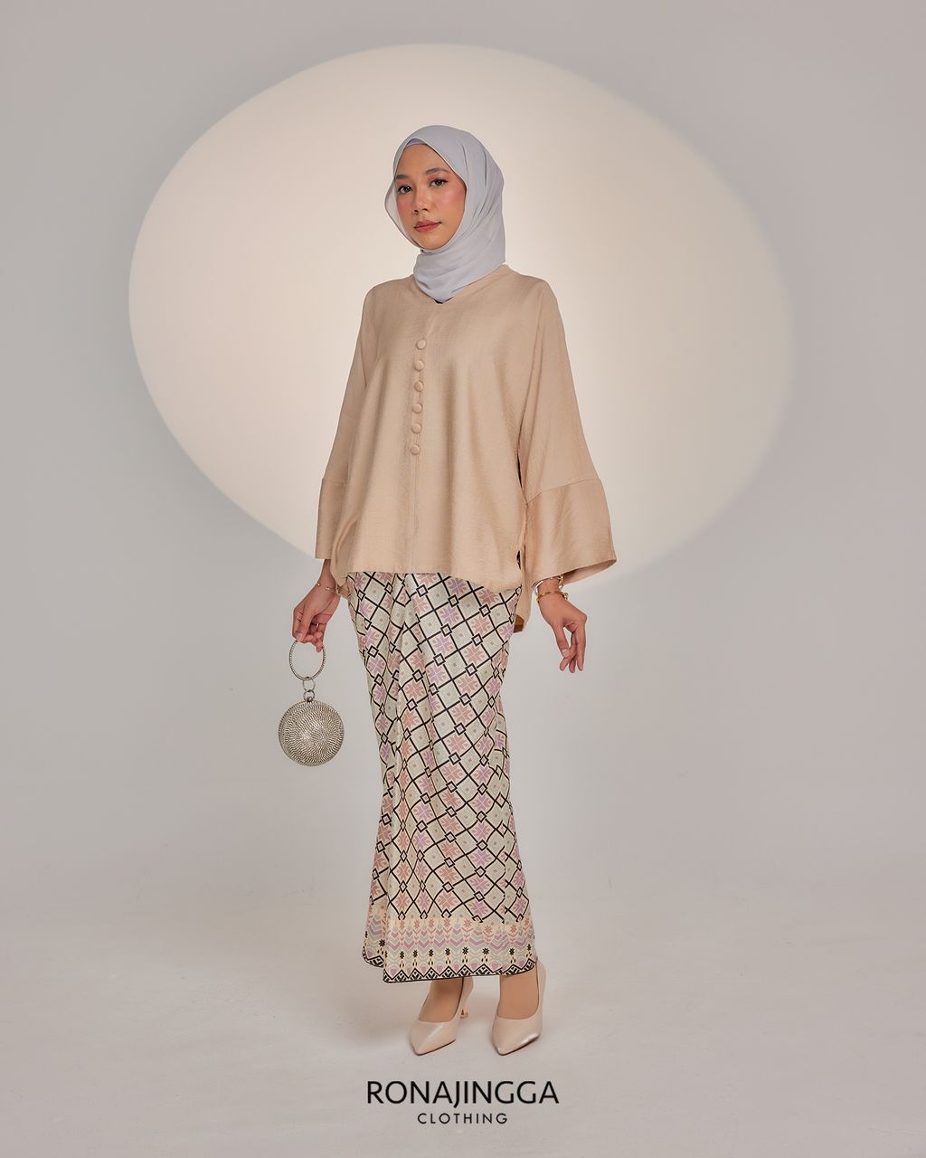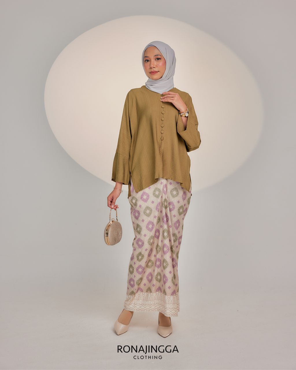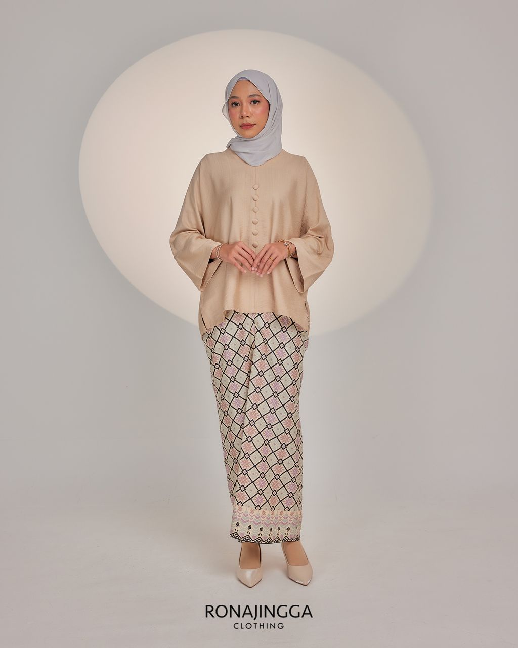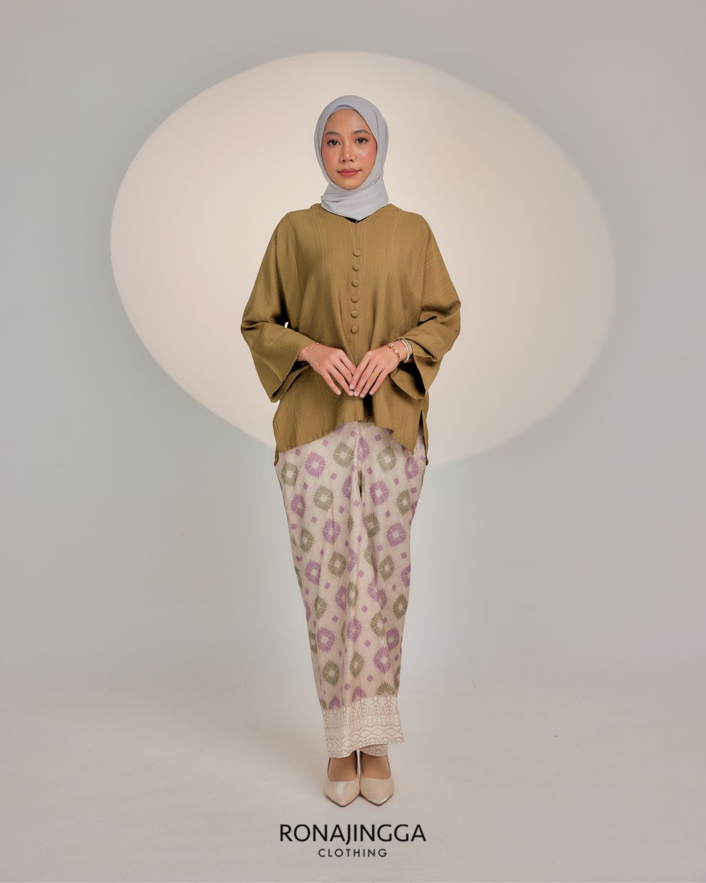 It is a Minimal kaftan kurung made from Iron-less High Quality Premium Linen Top + Printed Songket Cotton Vienna that is Soft, Cooling & Flowy. It fits nicely on any body shape and super comfy to wear from day to night.
