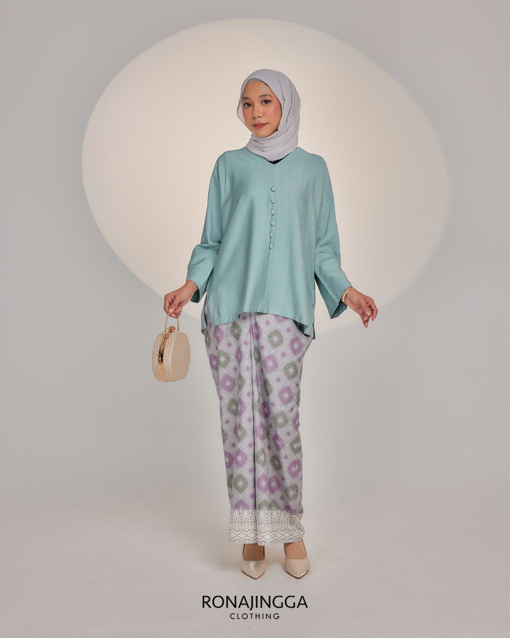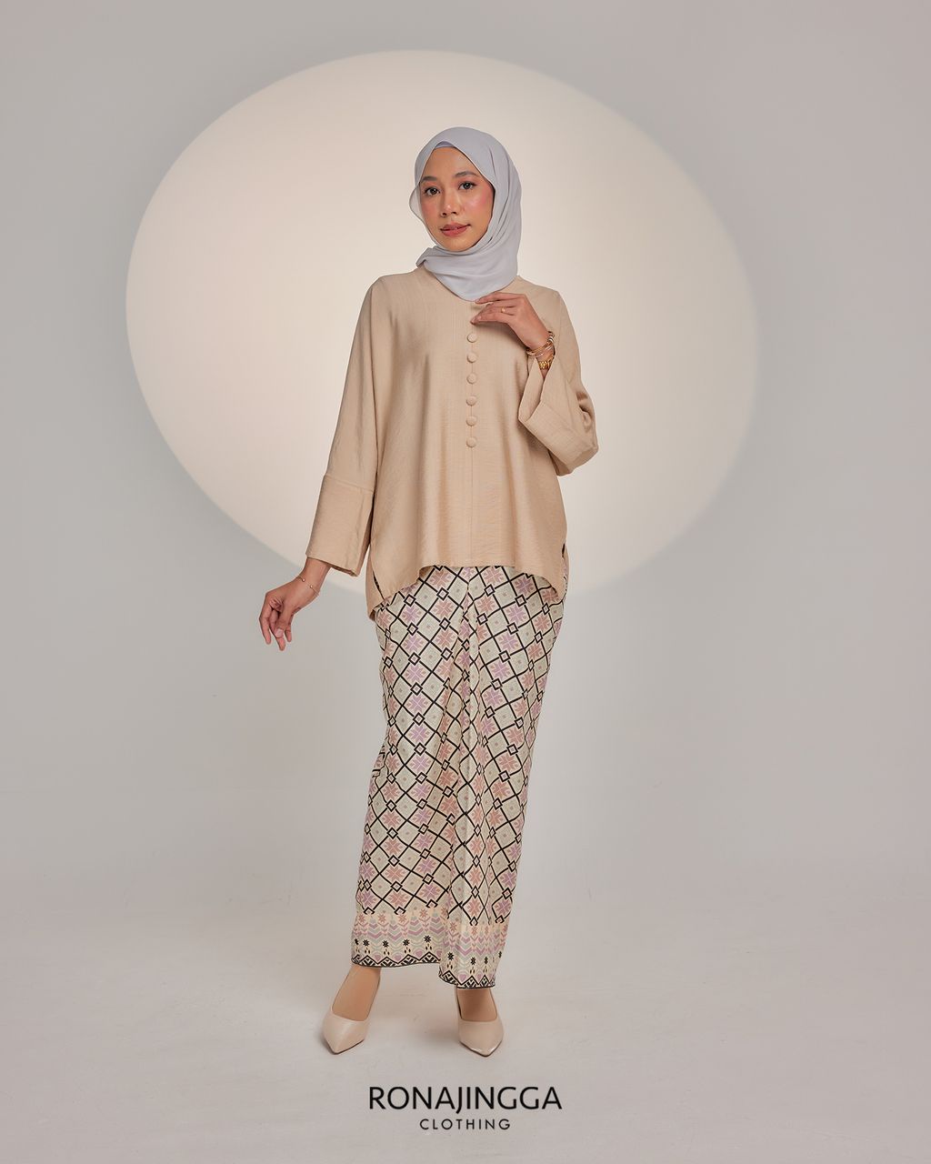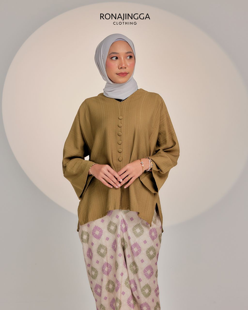 It is a Minimal kaftan kurung made from Iron-less High Quality Premium Linen Top + Printed Songket Cotton Vienna that is Soft, Cooling & Flowy. It fits nicely on any body shape and super comfy to wear from day to night.