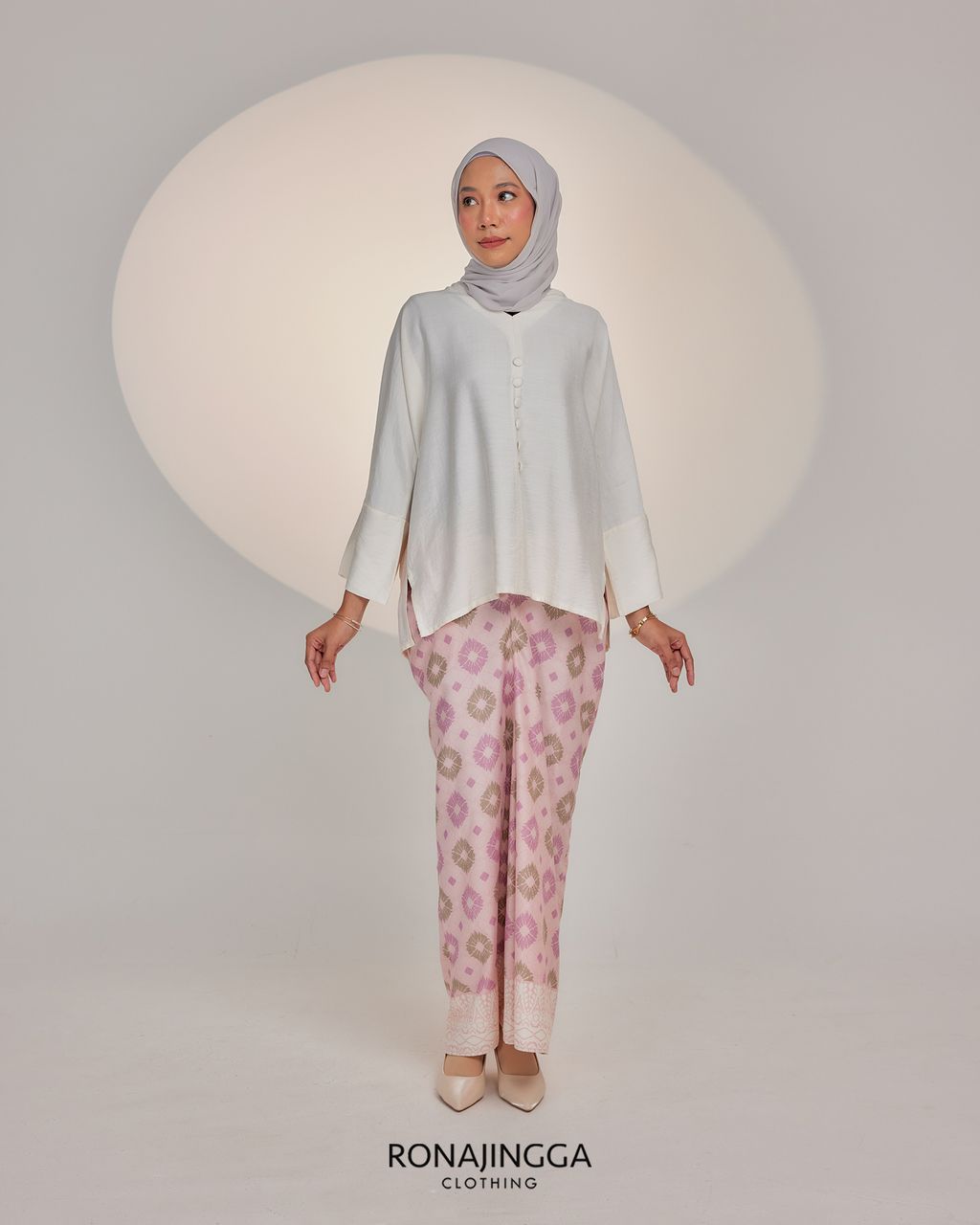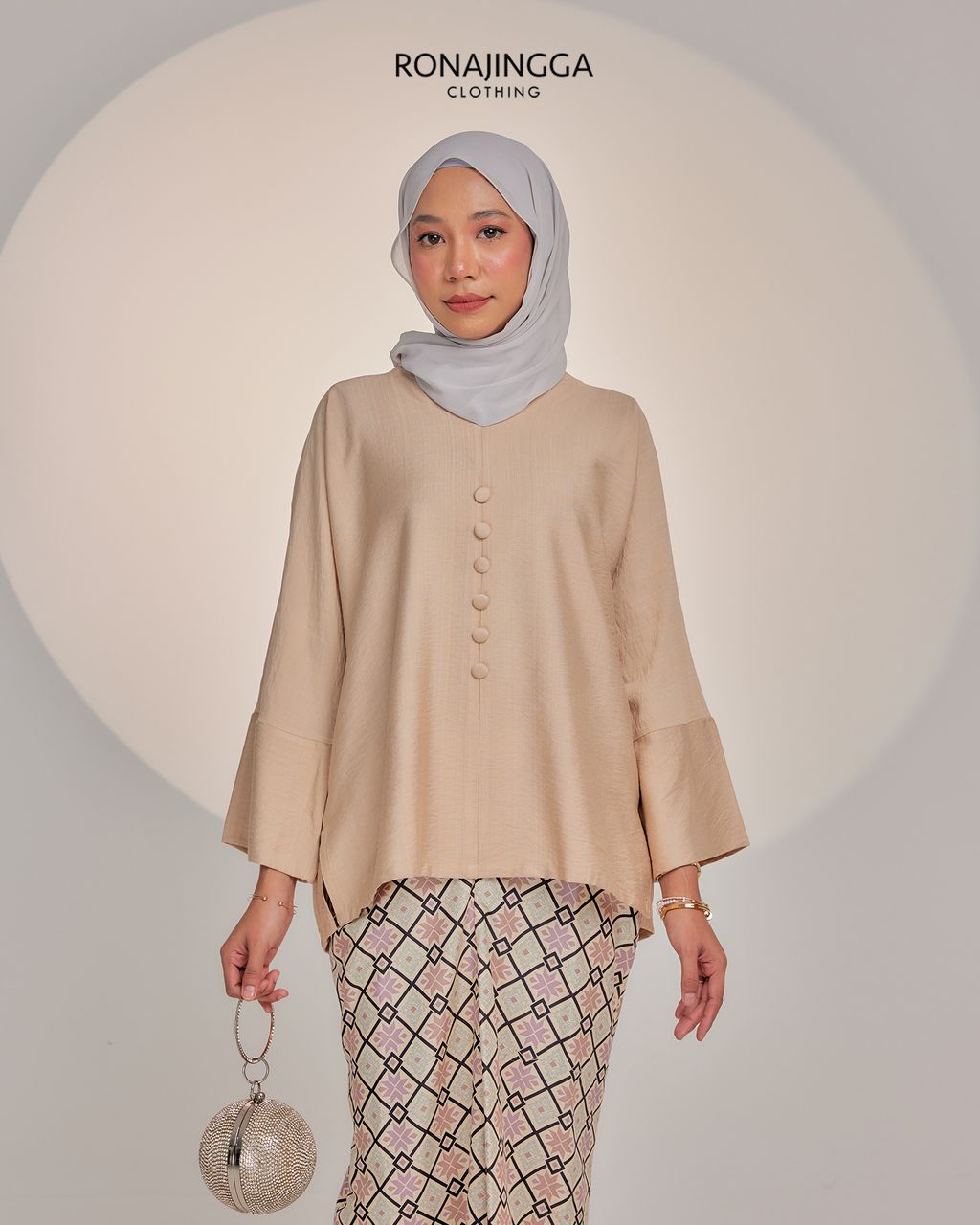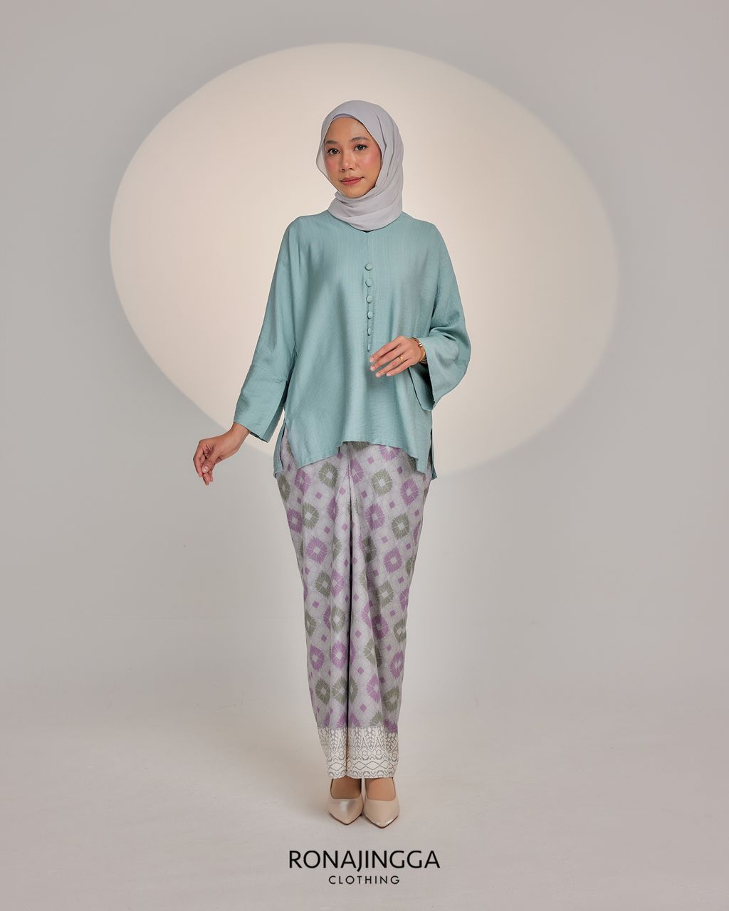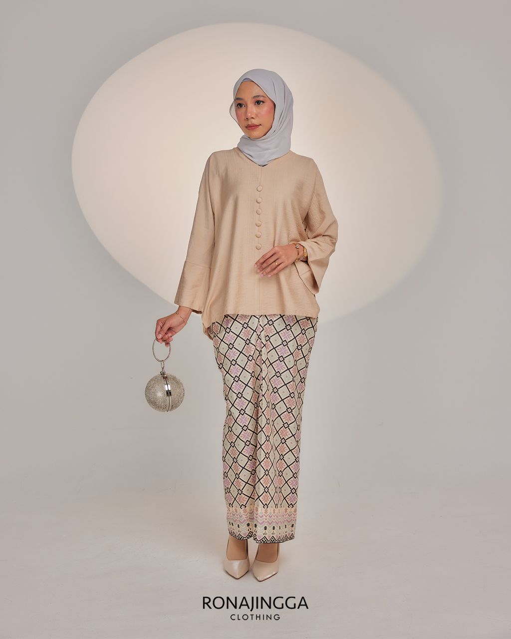It is a Minimal kaftan kurung made from Iron-less High Quality Premium Linen Top + Printed Songket Cotton Vienna that is Soft, Cooling & Flowy. It fits nicely on any body shape and super comfy to wear from day to night.
