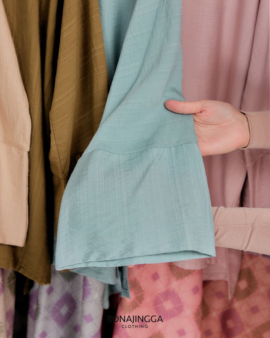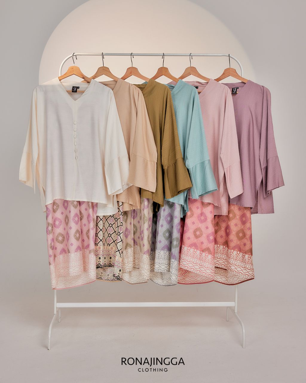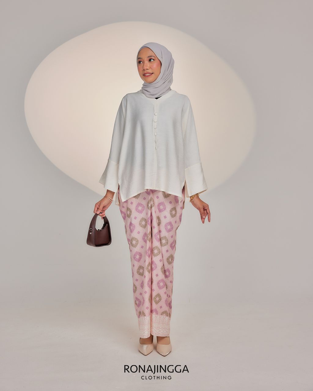 The top is a loose kaftan top with wide wuduk friendly sleeves design that can even be easily pulled up for breastfeeding and comfortably loose enough for preggy mommy. Thus, the unique cut instant pario skirt design gives a stylish look and comfortably easy to move without showing off your feet.