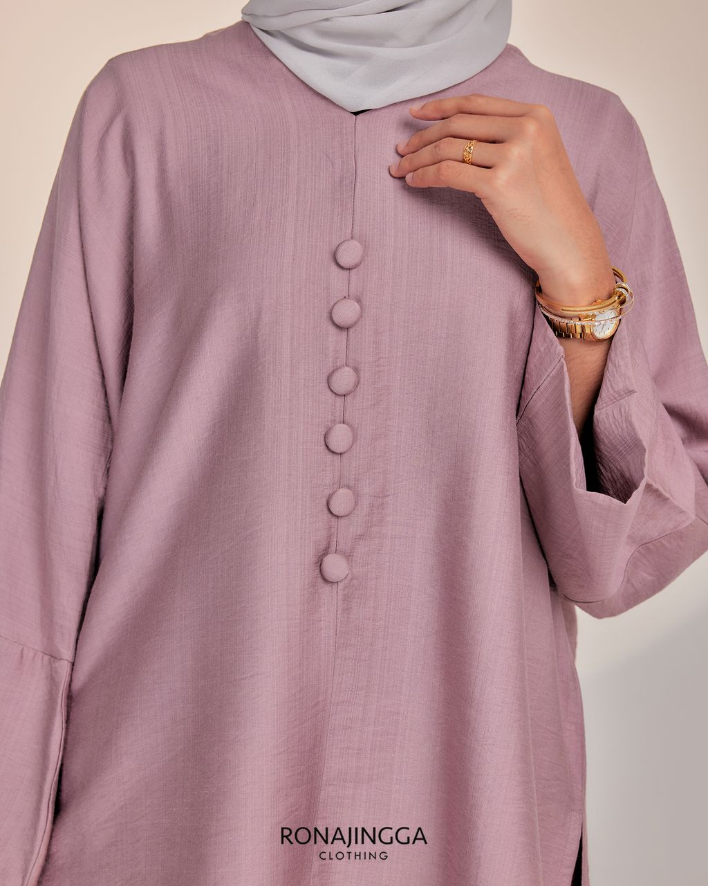 A premium Elegant, Exclusive, Loose Kaftan Kurung with cute show buttons detailing that is suitable for events or work. It is minimal kaftan kurung - great for on the go, busy days. Just simply slip it on and you're good to go.