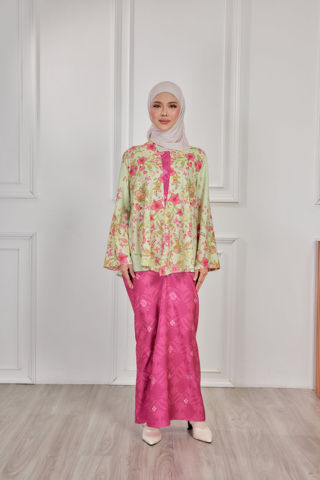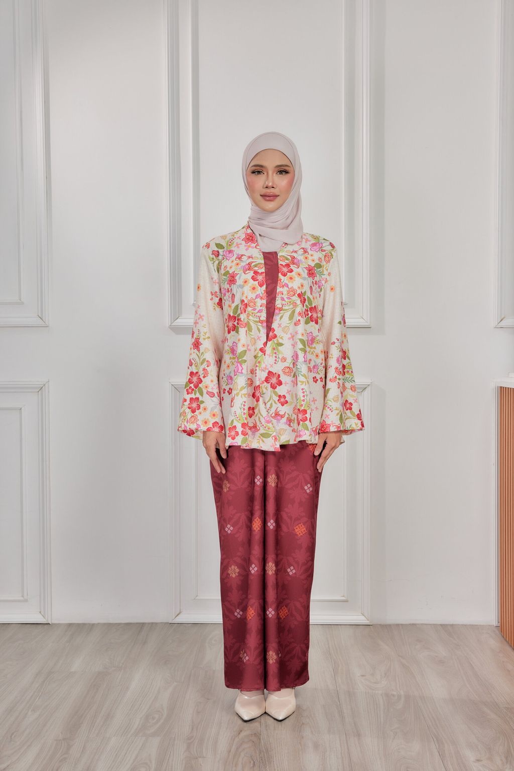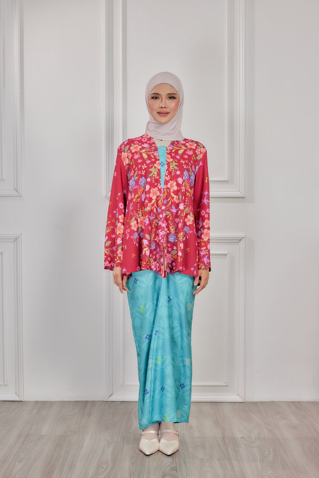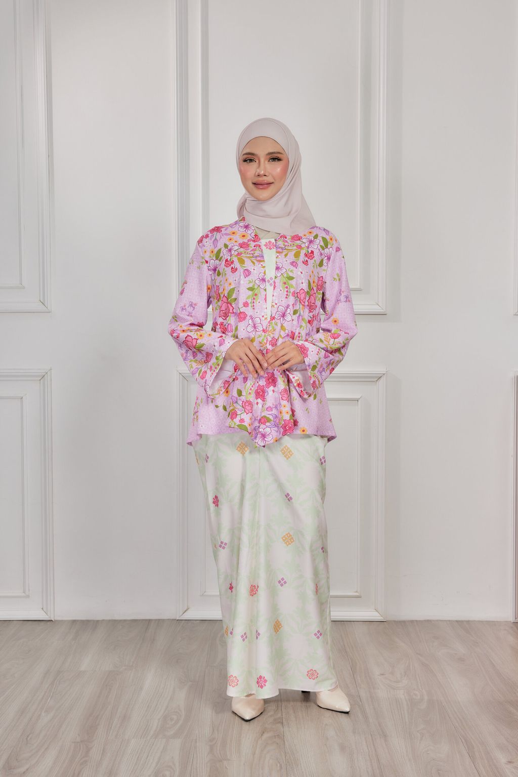 A premium elegant, exclusive, iron-less, loose Kebaya that is suitable for events or work. It is minimal baggy kurung - great for on the go, busy days. Just simply slip it on and you're good to go