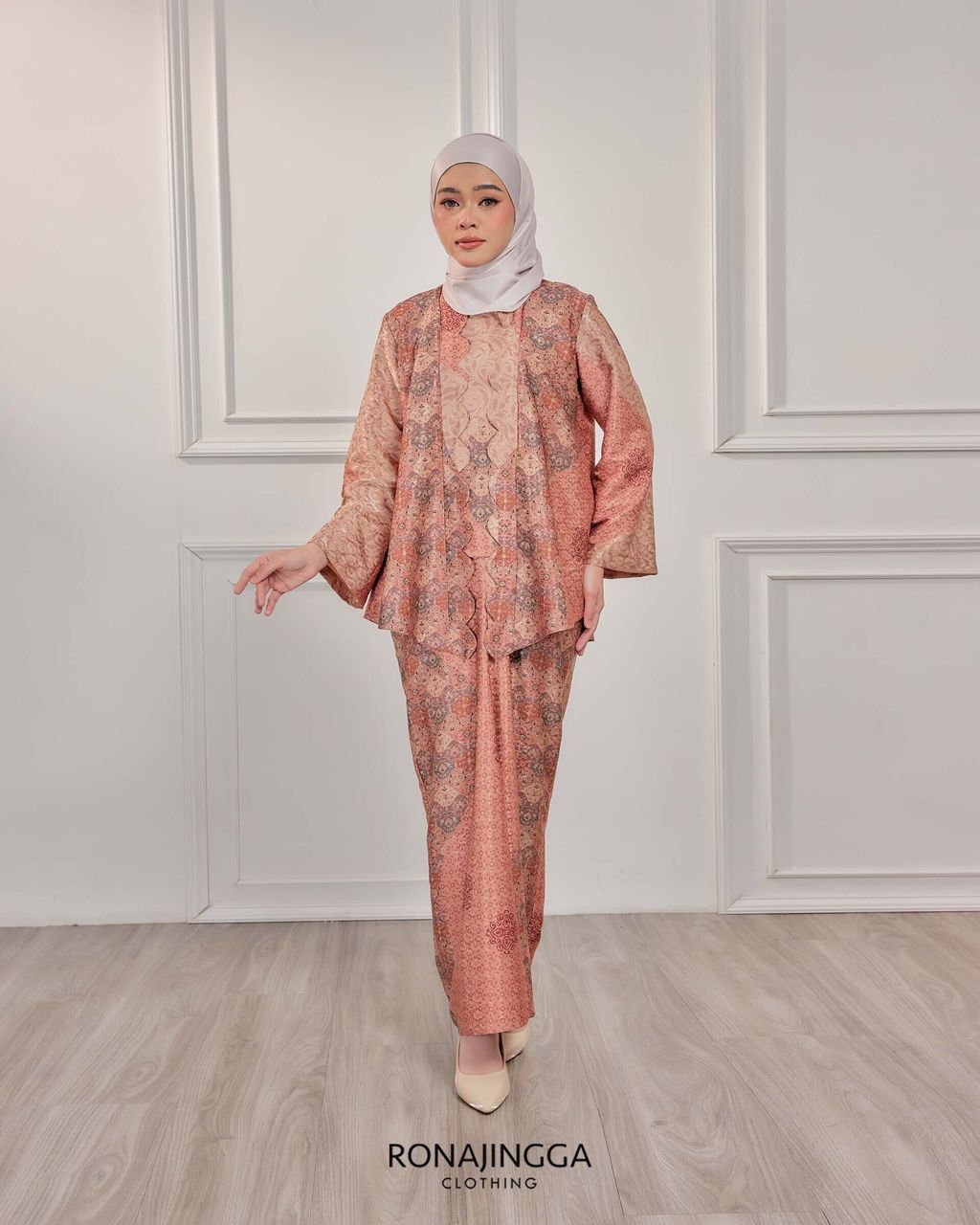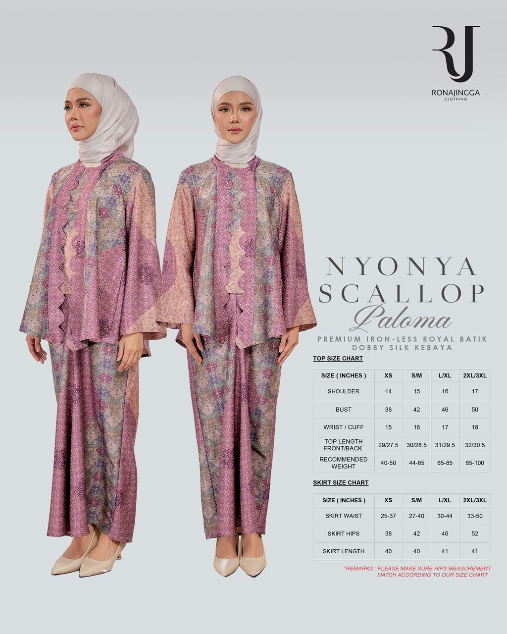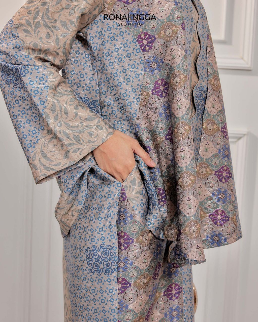 It is a Minimal kebaya made from Ironless High Quality Premium Printed Dobby Silk that is Soft, Cooling & Flowy. It fits nicely on any body shape and super comfy to wear from day to night. Thus, the unique instant pario skirt design gives a stylish look and comfortably easy to move without showing off your feet.