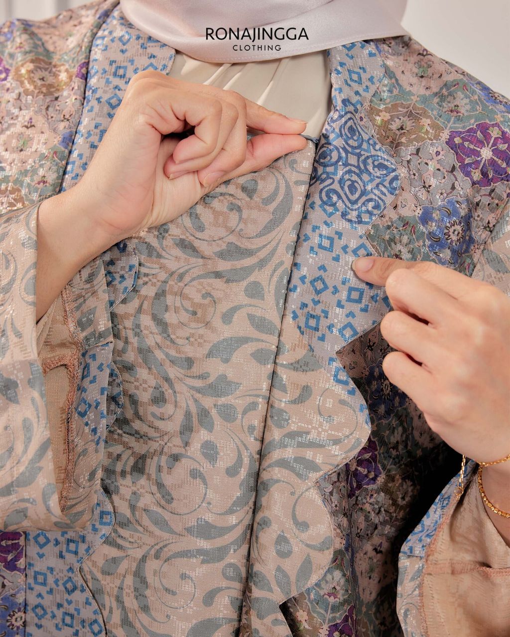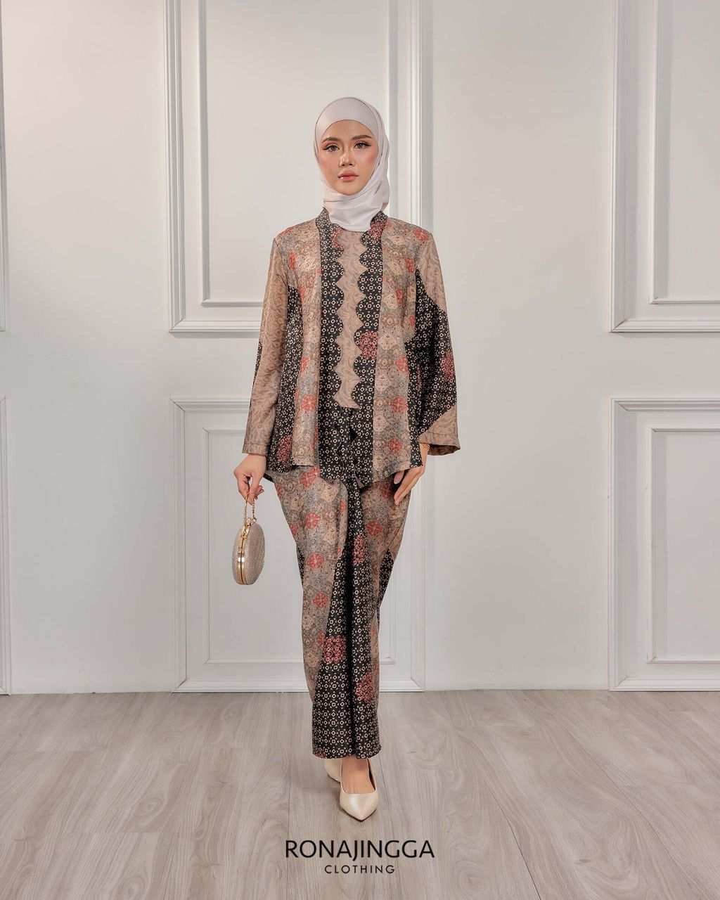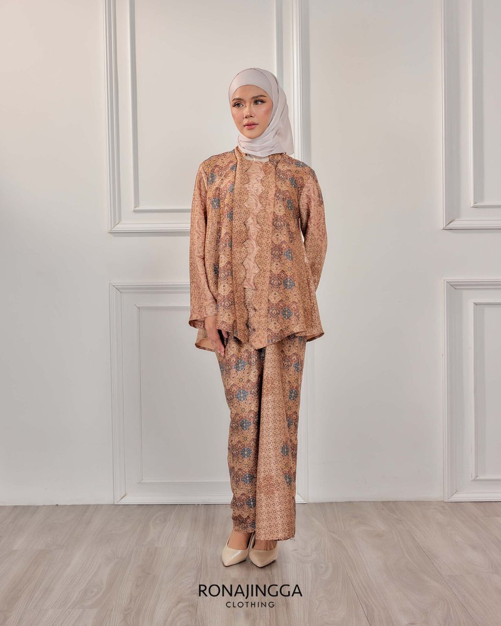 It is a Minimal kebaya made from Ironless High Quality Premium Printed Dobby Silk that is Soft, Cooling & Flowy. It fits nicely on any body shape and super comfy to wear from day to night. Thus, the unique instant pario skirt design gives a stylish look and comfortably easy to move without showing off your feet.