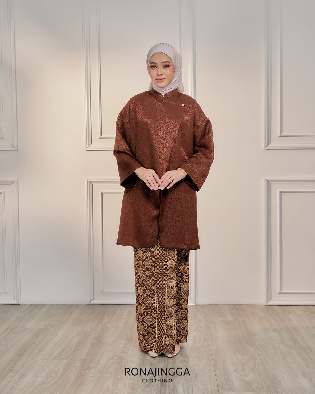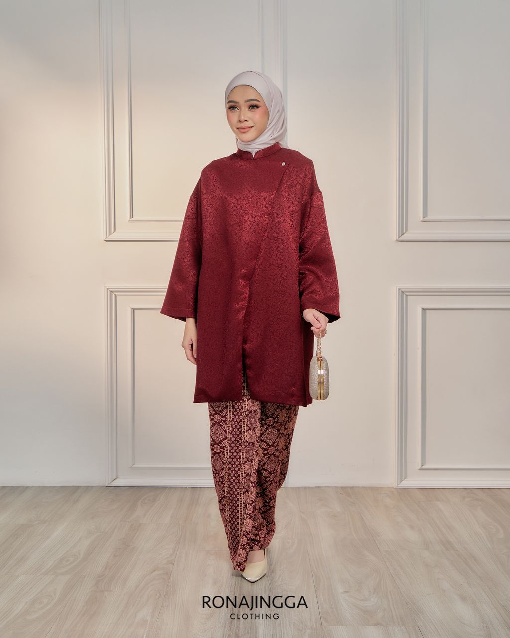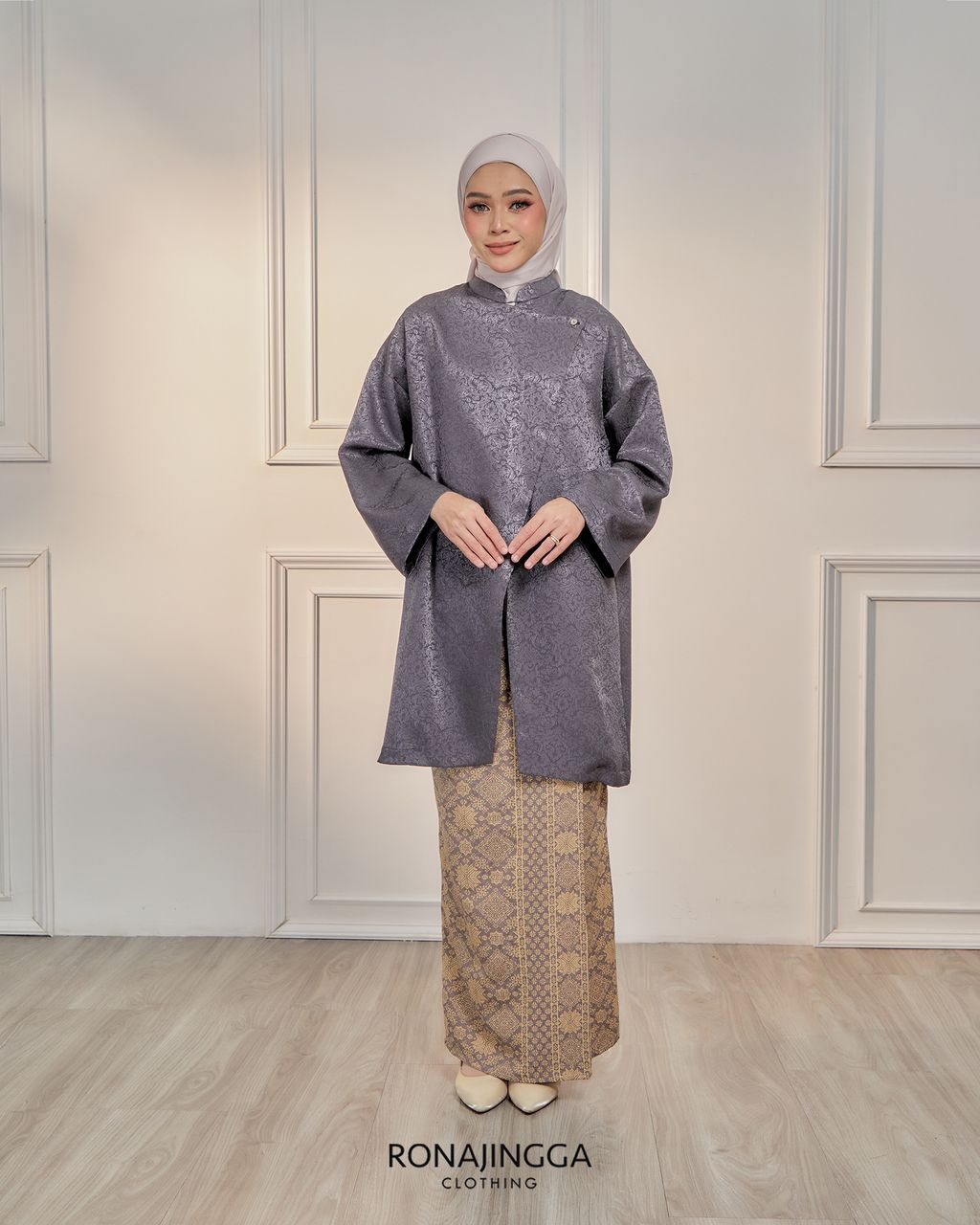 It is a loose, elegant and minimal baggy kebaya made from High Quality Premium Iron-less Dobby Silk and soft brocade with wuduk friendly wide sleeves design , that fits nicely on any body shape and cooling to wear from day to night. The top is a loose baggy top that can even be easily pulled up for breastfeeding and comfortably loose enough for preggy mommy.