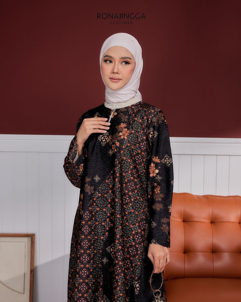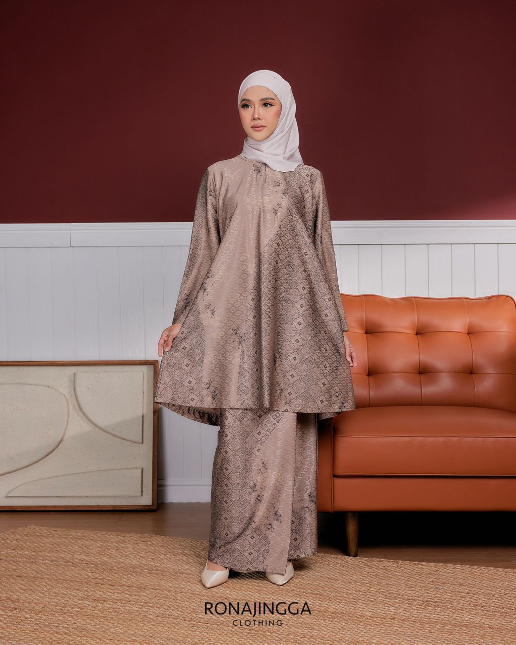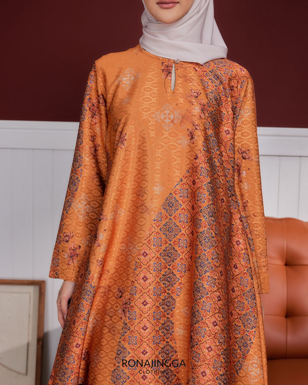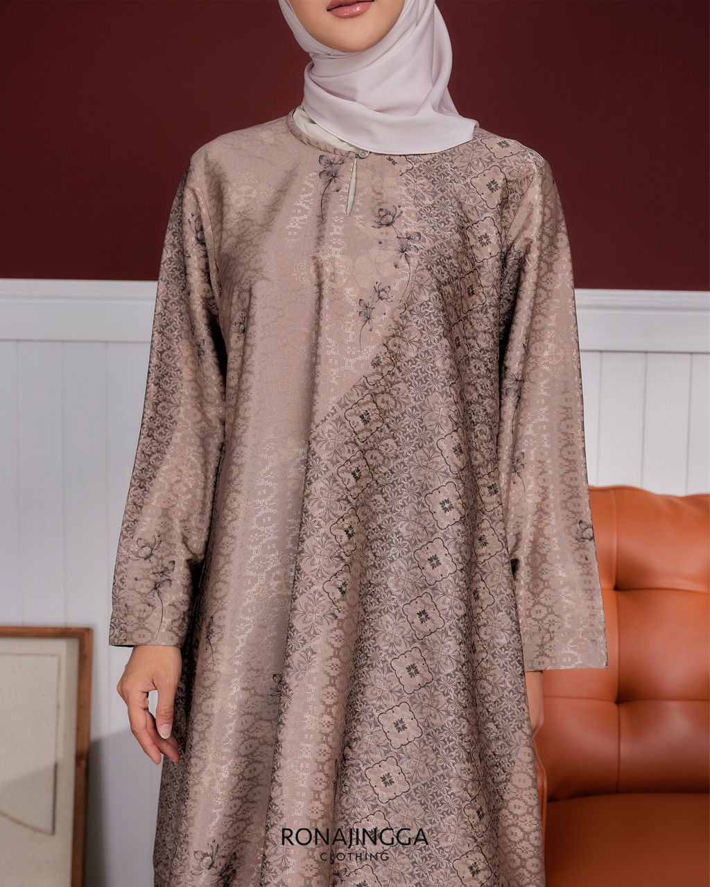 A premium losse, elegant, iron-less Kurung Pahang that is suitable for events or work. It is a modest elegant look kurung that fits nicely on any body shape. The top is a loose long top that is comfortably loose enough for preggy mommy. Featuring, wide sleeves design that is wuduk friendly. It is an easy wear loose kurung
