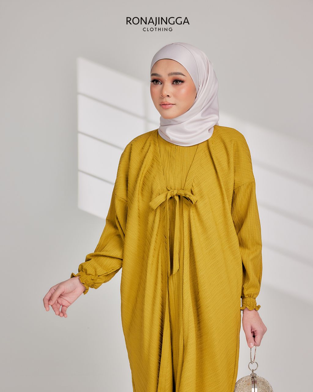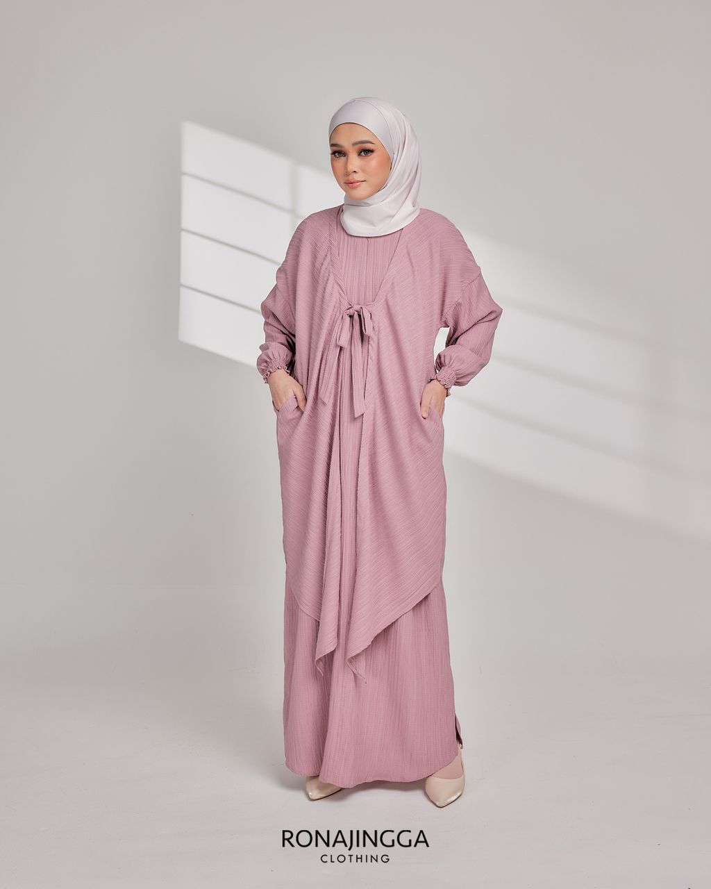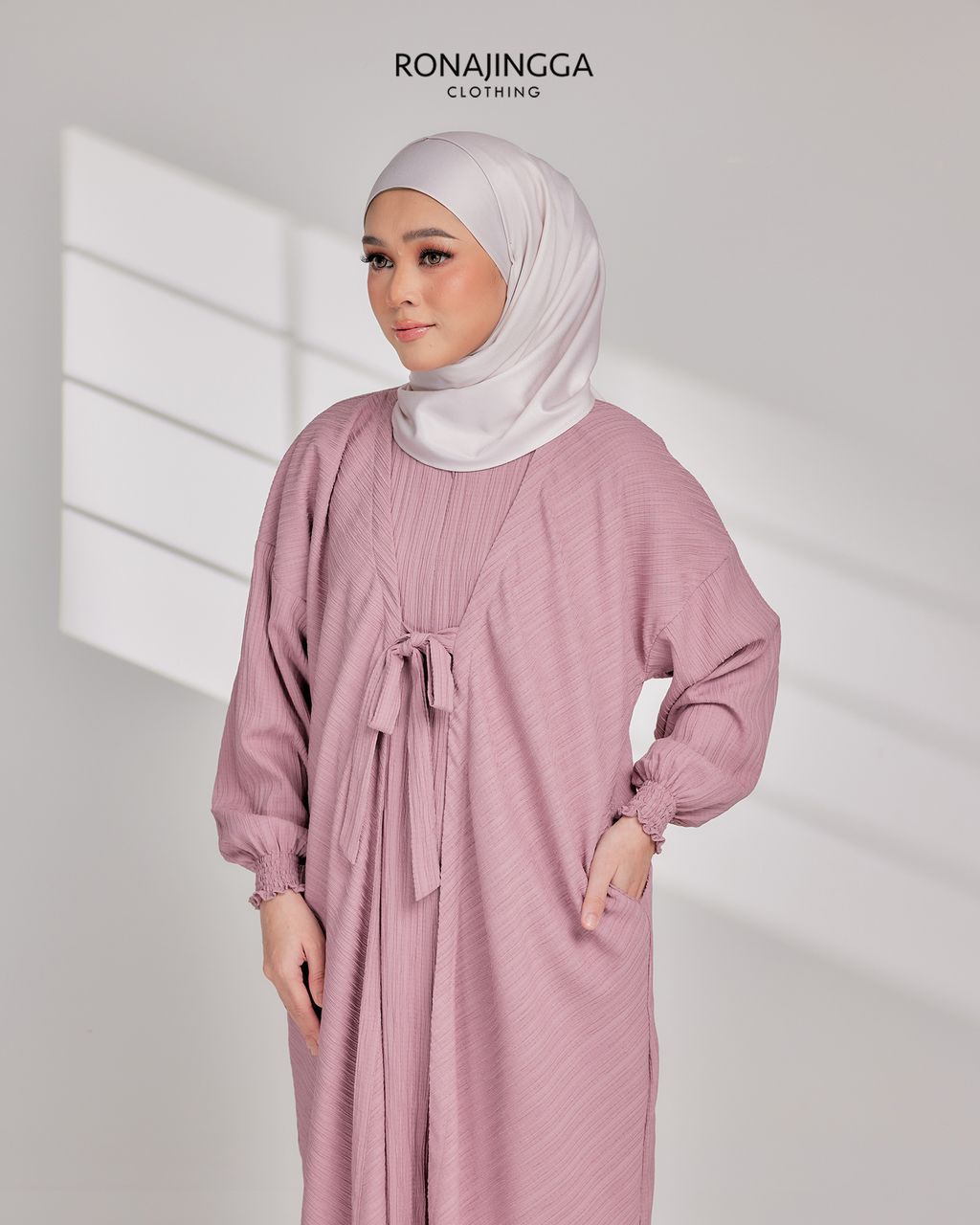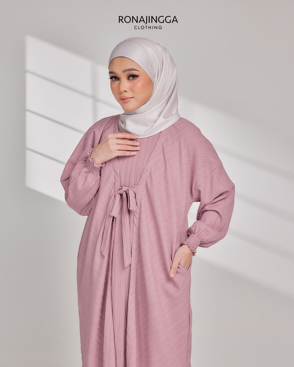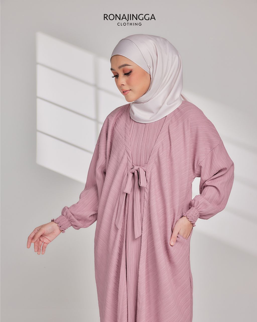 It features with one large side pocket and whudu' friendly setchable sleeves. Thus, the cuffs of the sleeves can be pulled up that is wuduk' and dish washing friendly. It is super comfy and breathable, comfy to wear from day to night.