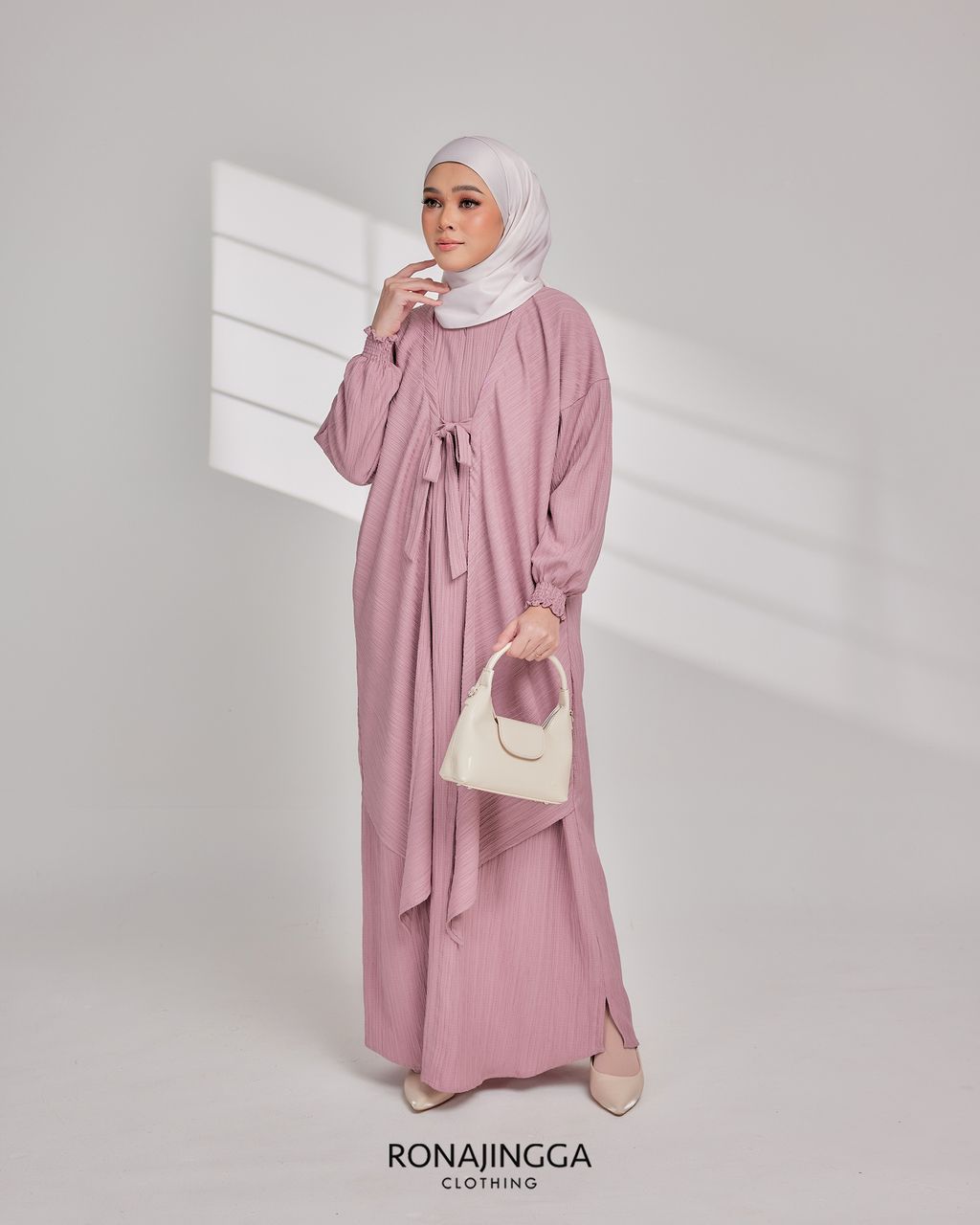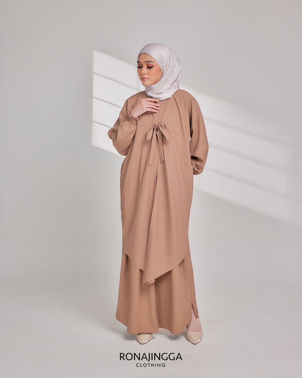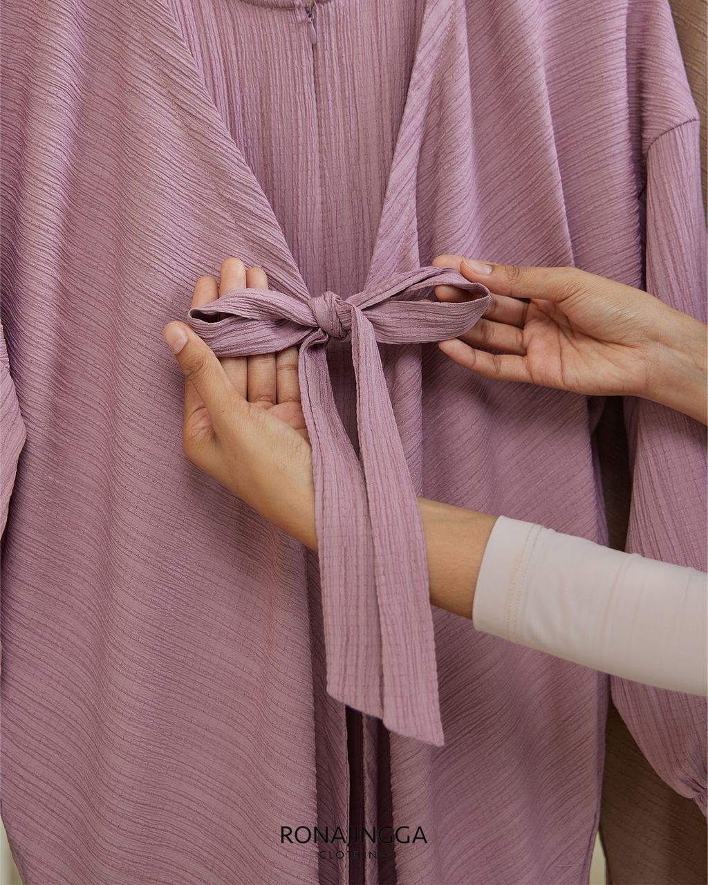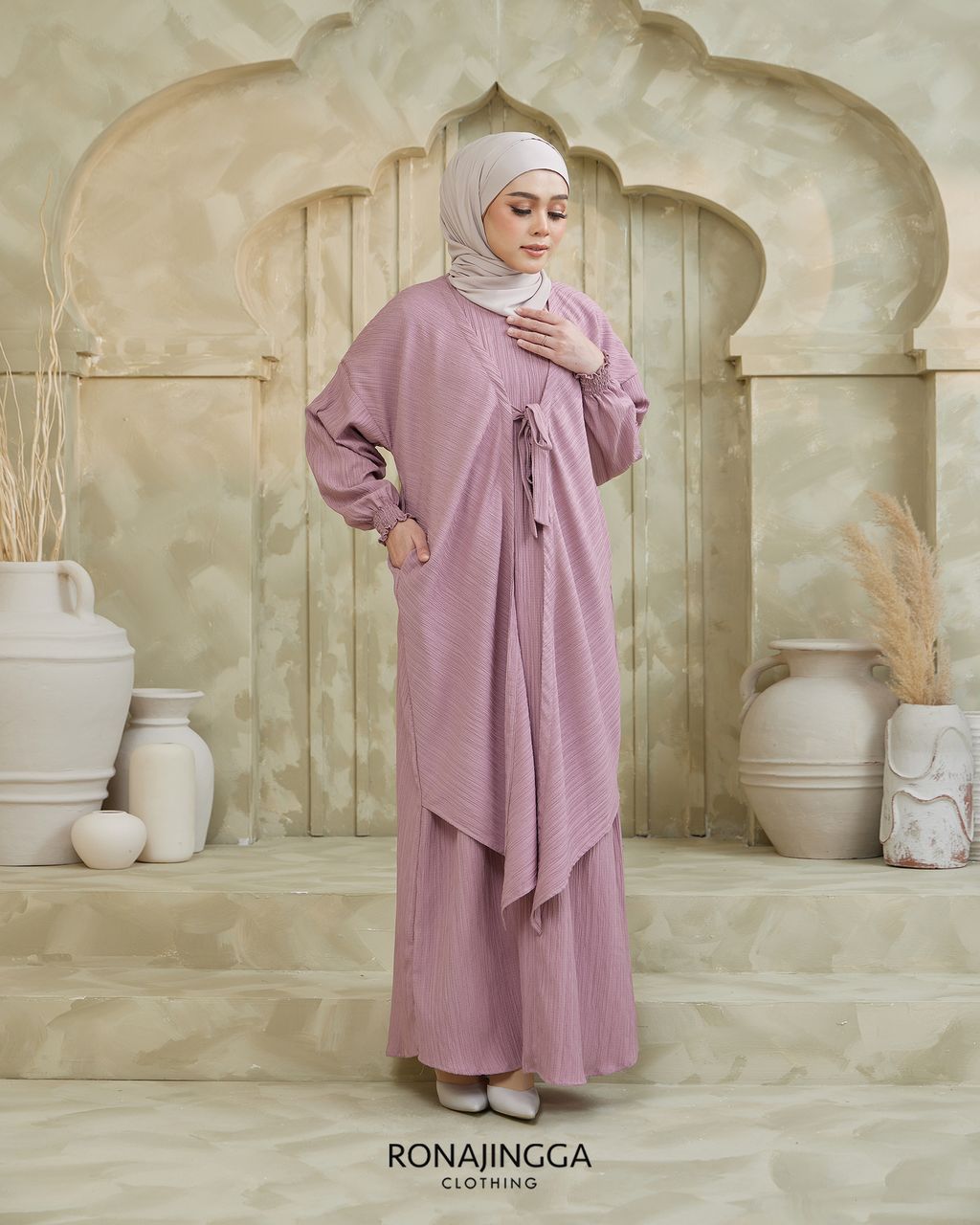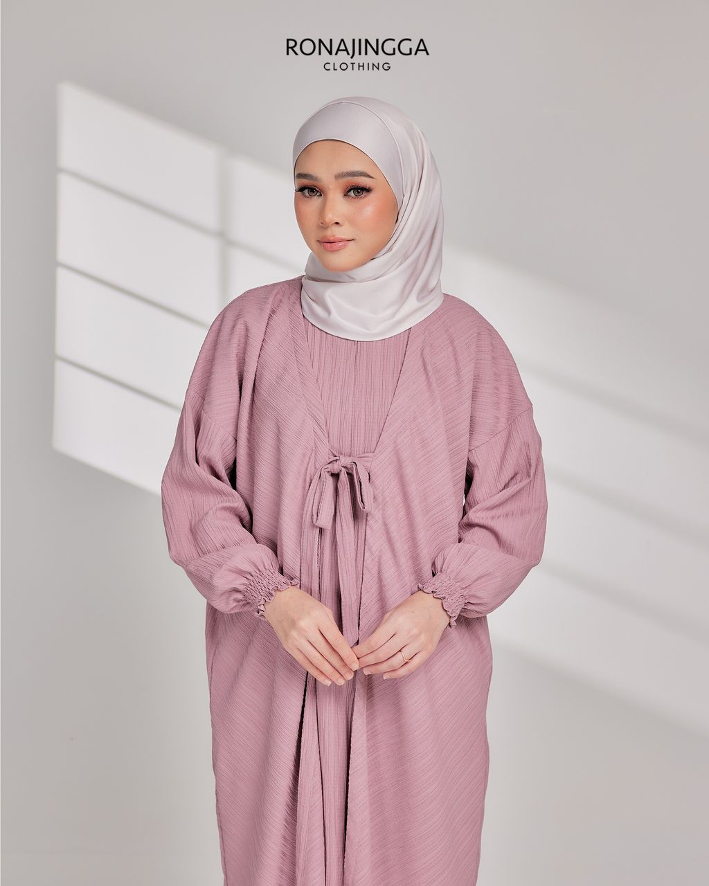 It features with one large side pocket and whudu' friendly setchable sleeves. Thus, the cuffs of the sleeves can be pulled up that is wuduk' and dish washing friendly. It is super comfy and breathable, comfy to wear from day to night.