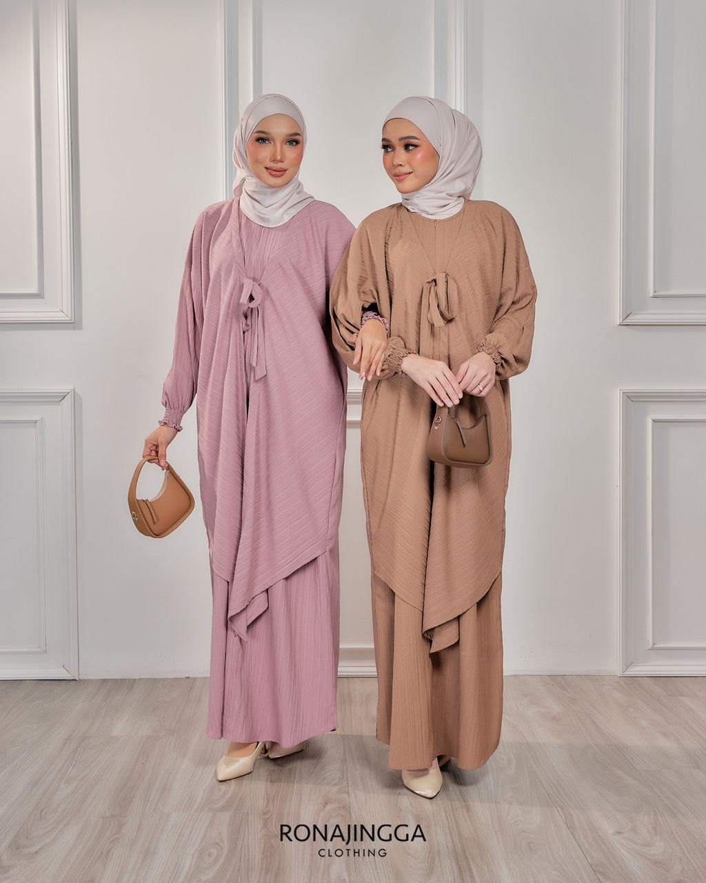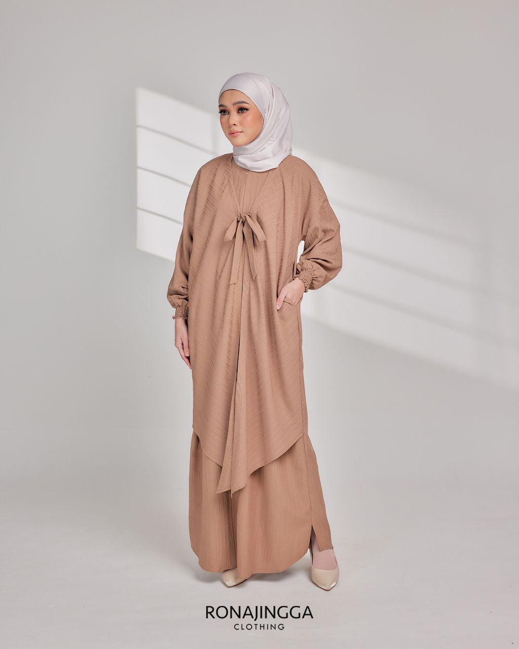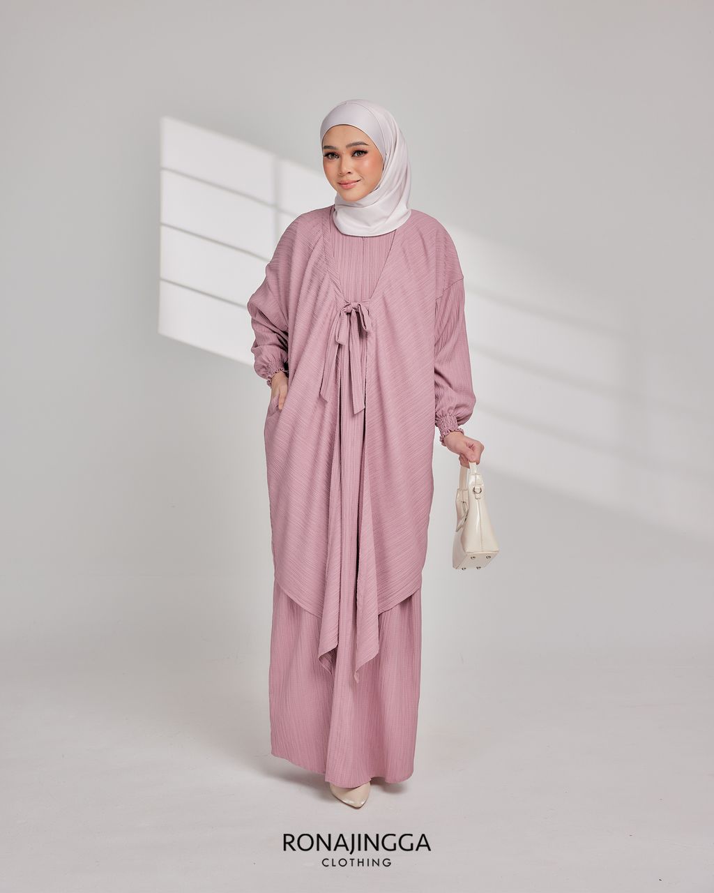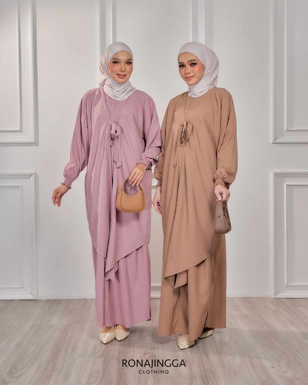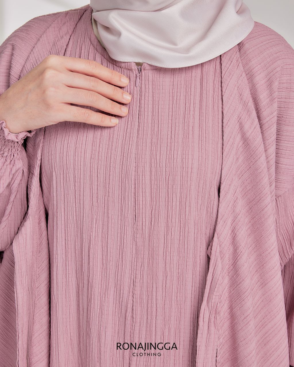 It features with one large side pocket and whudu' friendly setchable sleeves. Thus, the cuffs of the sleeves can be pulled up that is wuduk' and dish washing friendly. It is super comfy and breathable, comfy to wear from day to night.