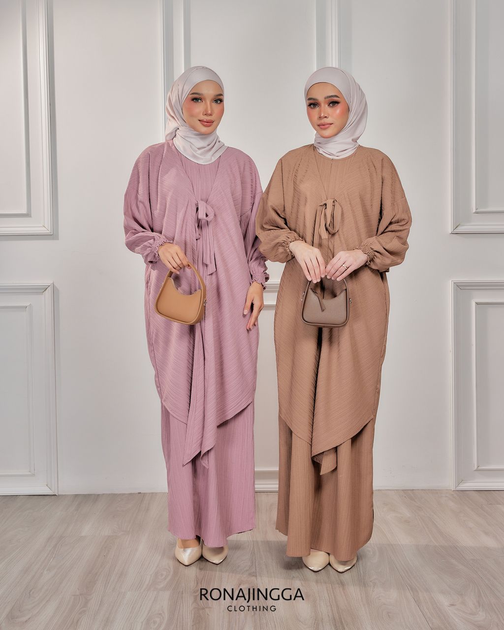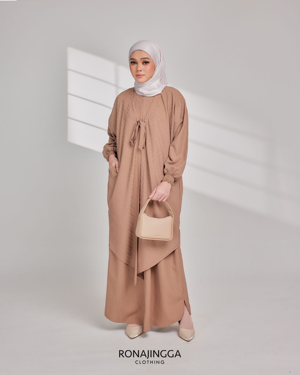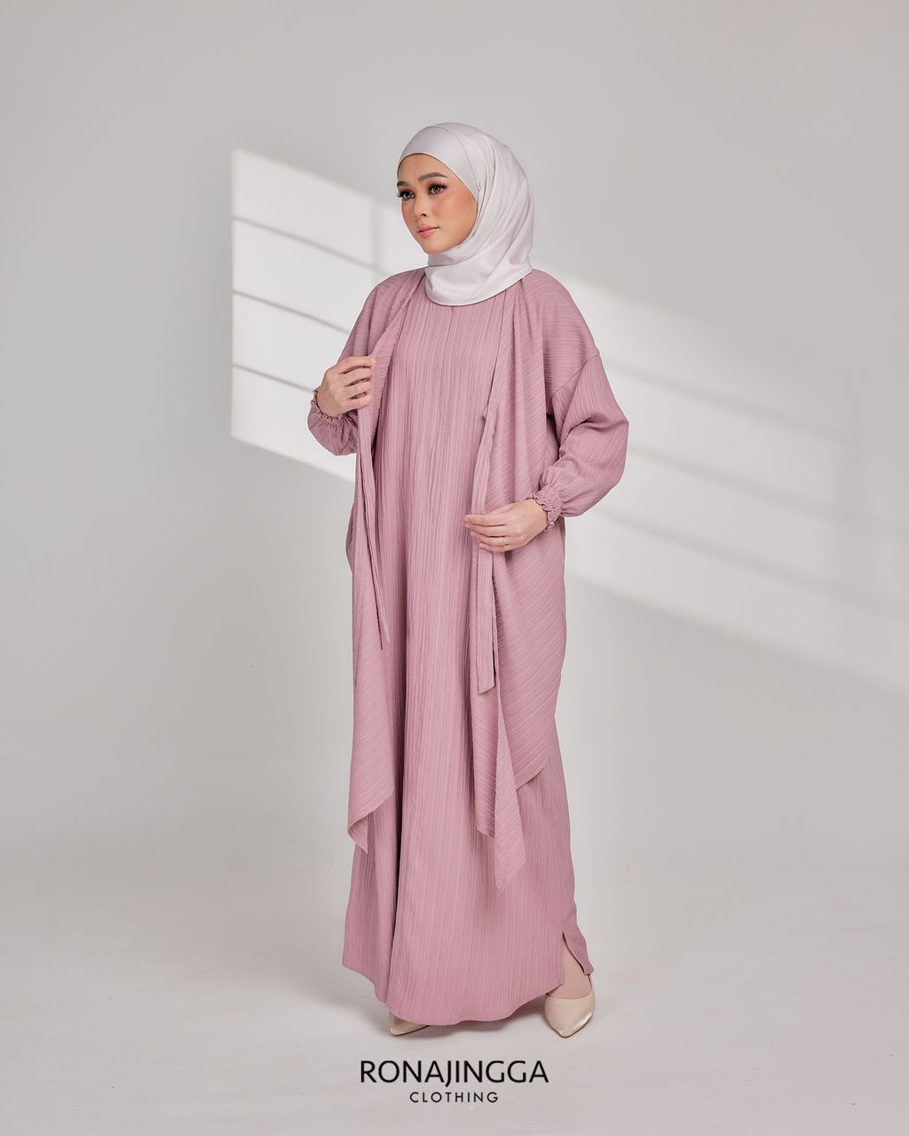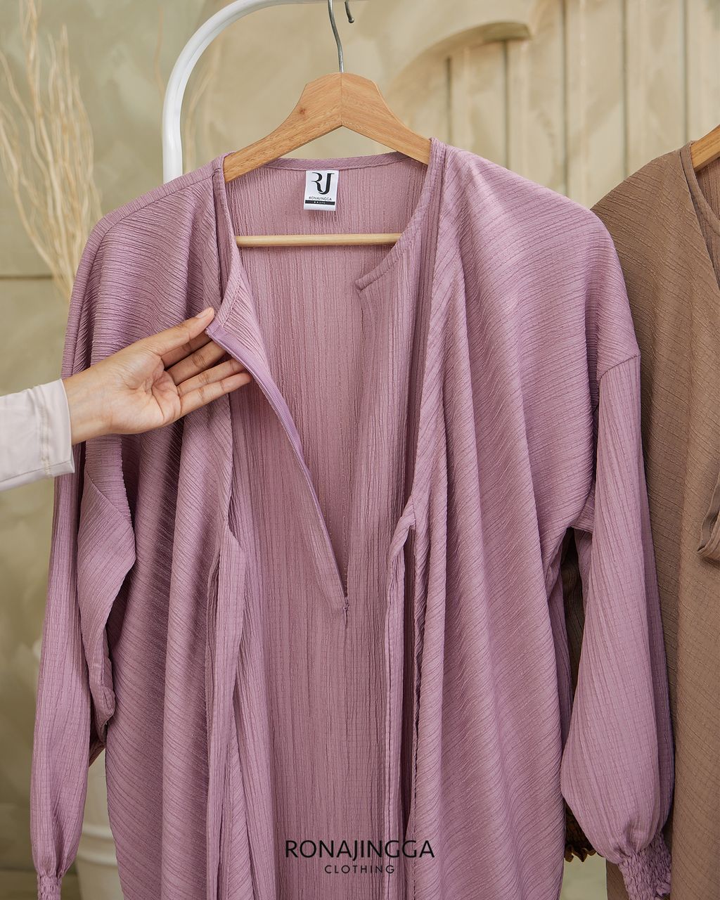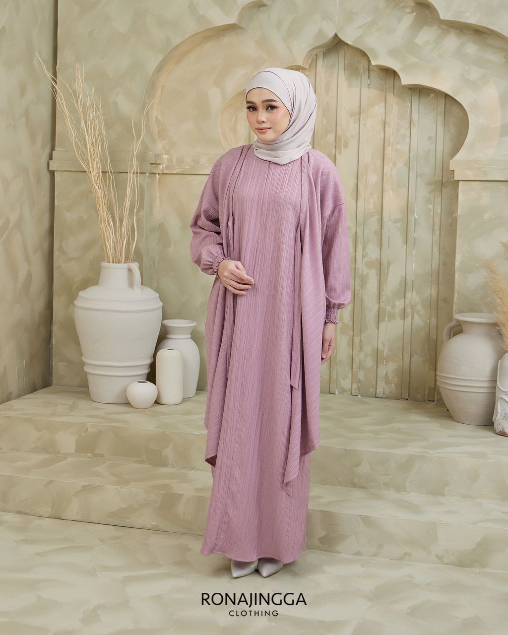 It features with one large side pocket and whudu' friendly setchable sleeves. Thus, the cuffs of the sleeves can be pulled up that is wuduk' and dish washing friendly. It is super comfy and breathable, comfy to wear from day to night.