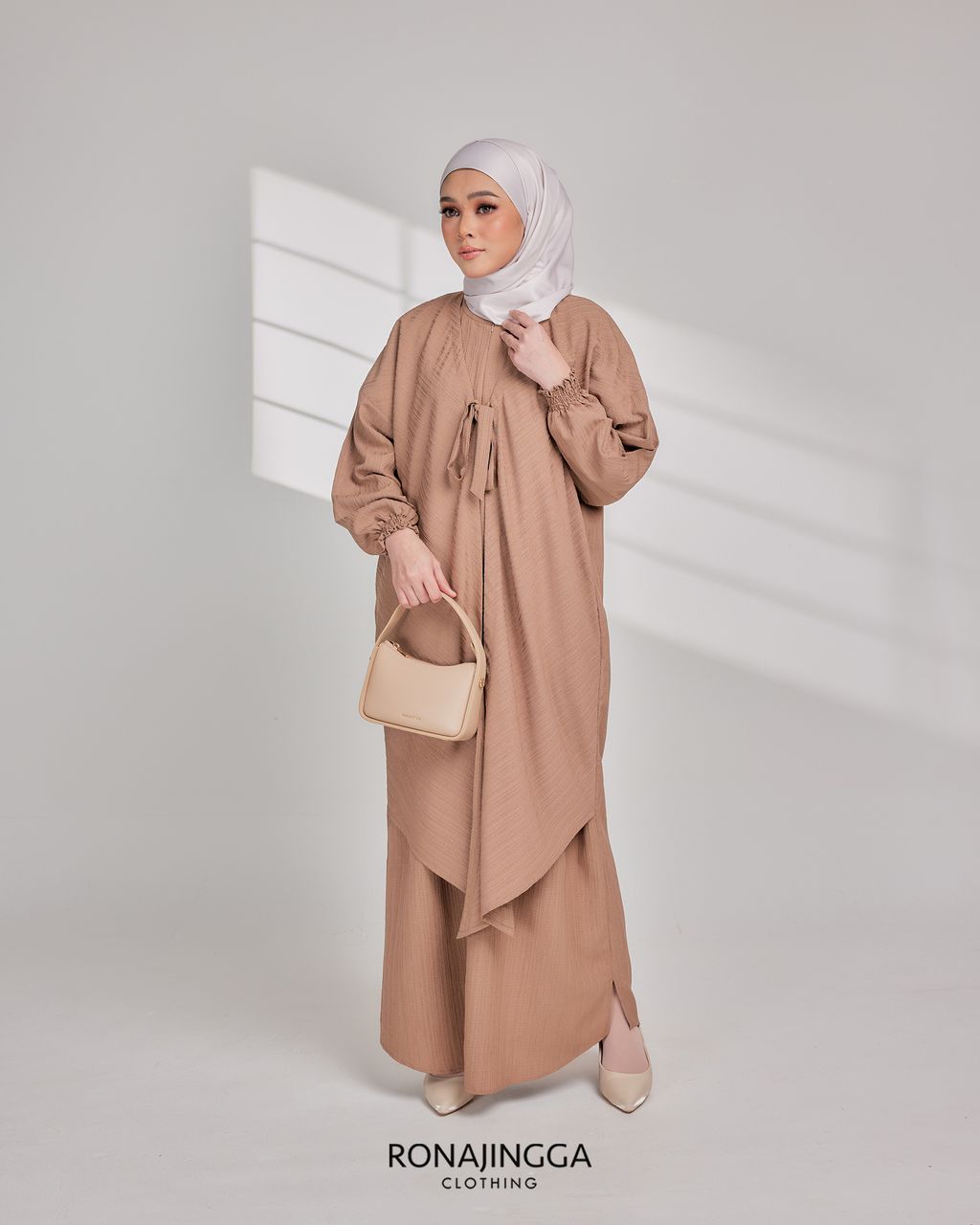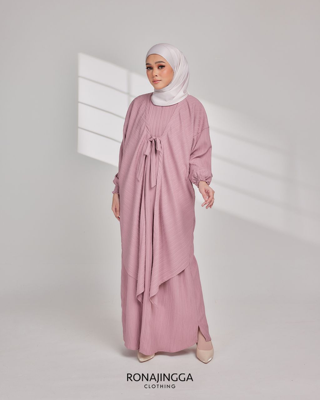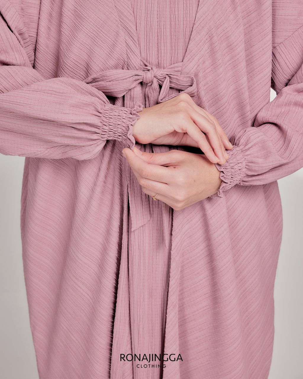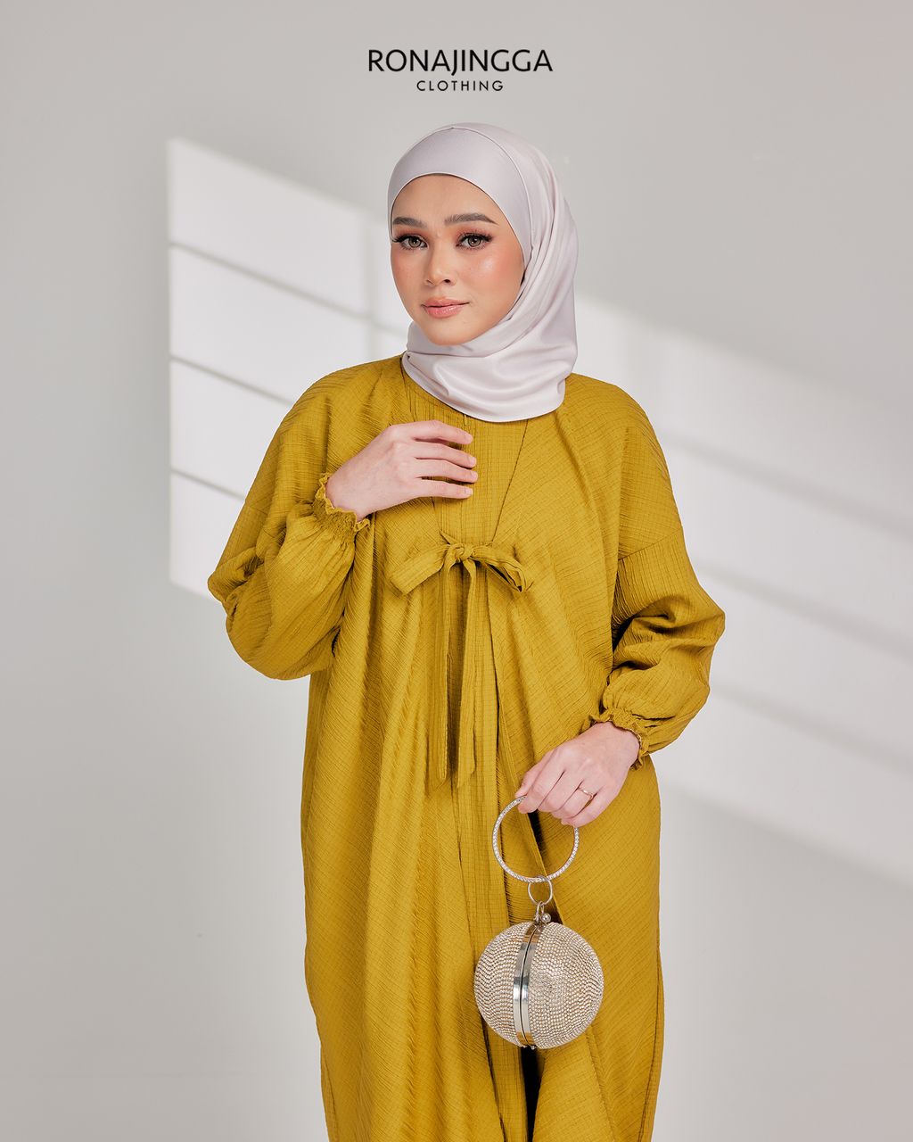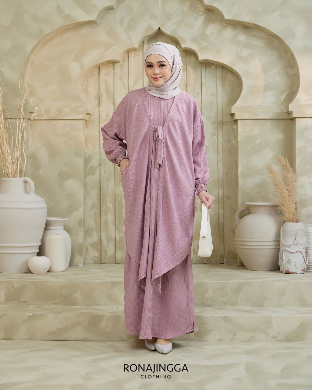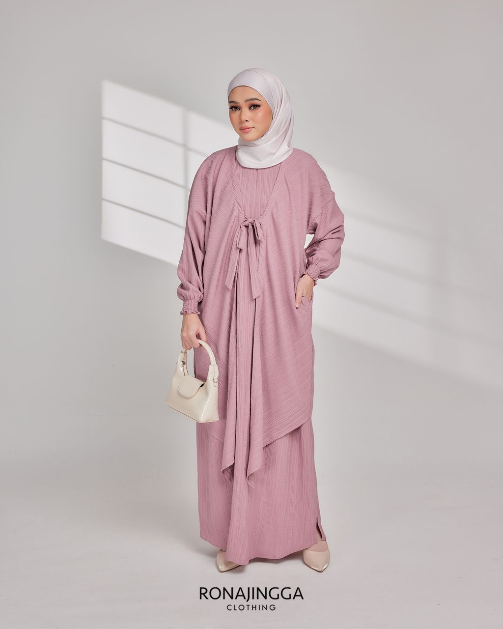 It features with one large side pocket and whudu' friendly setchable sleeves. Thus, the cuffs of the sleeves can be pulled up that is wuduk' and dish washing friendly. It is super comfy and breathable, comfy to wear from day to night.