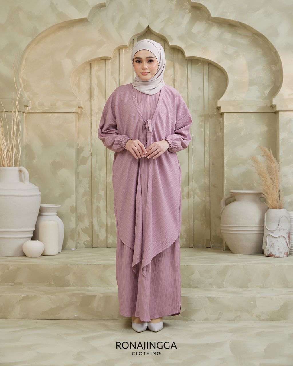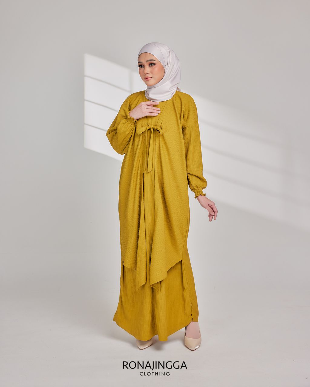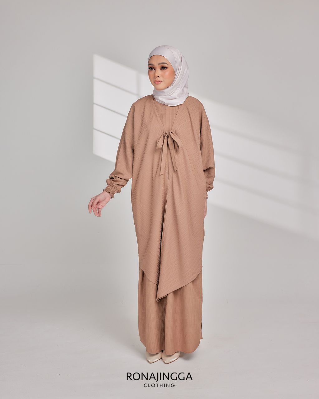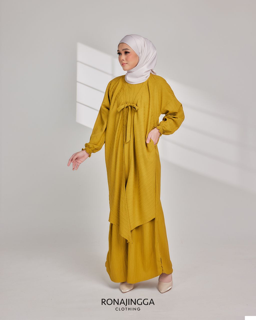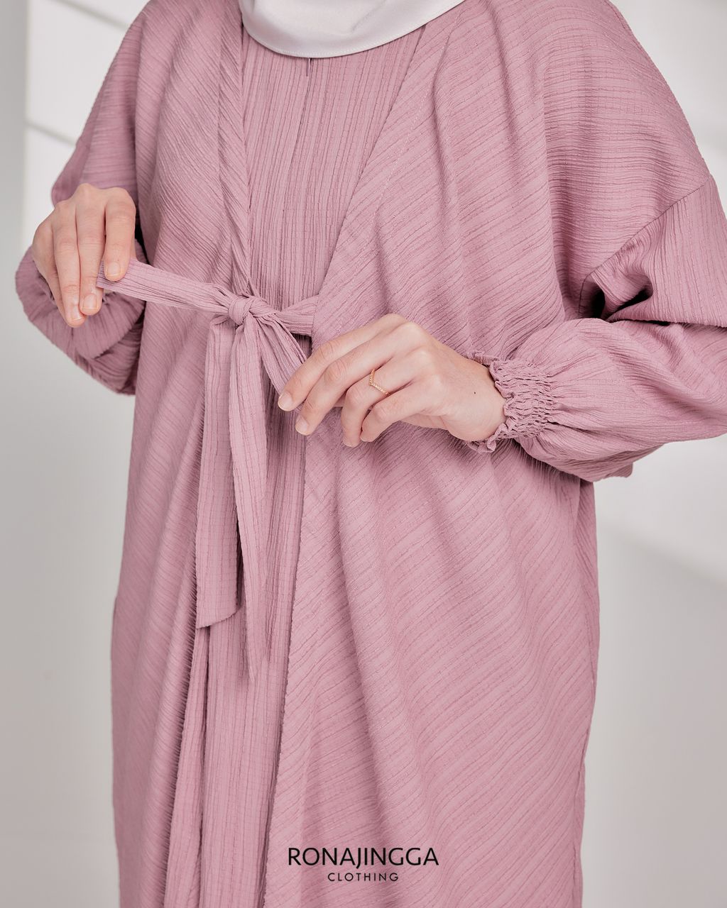 It features with one large side pocket and whudu' friendly setchable sleeves. Thus, the cuffs of the sleeves can be pulled up that is wuduk' and dish washing friendly. It is super comfy and breathable, comfy to wear from day to night.
