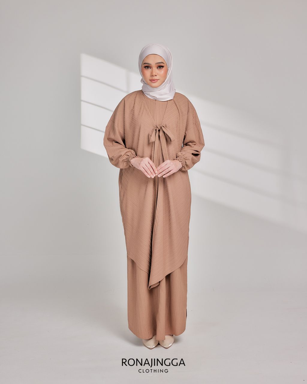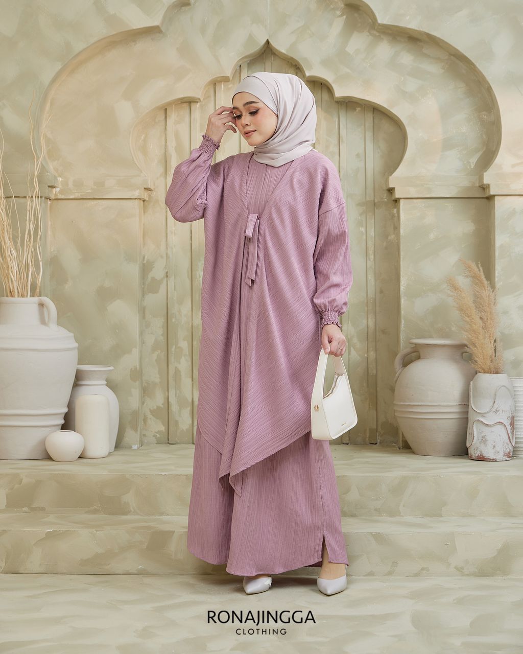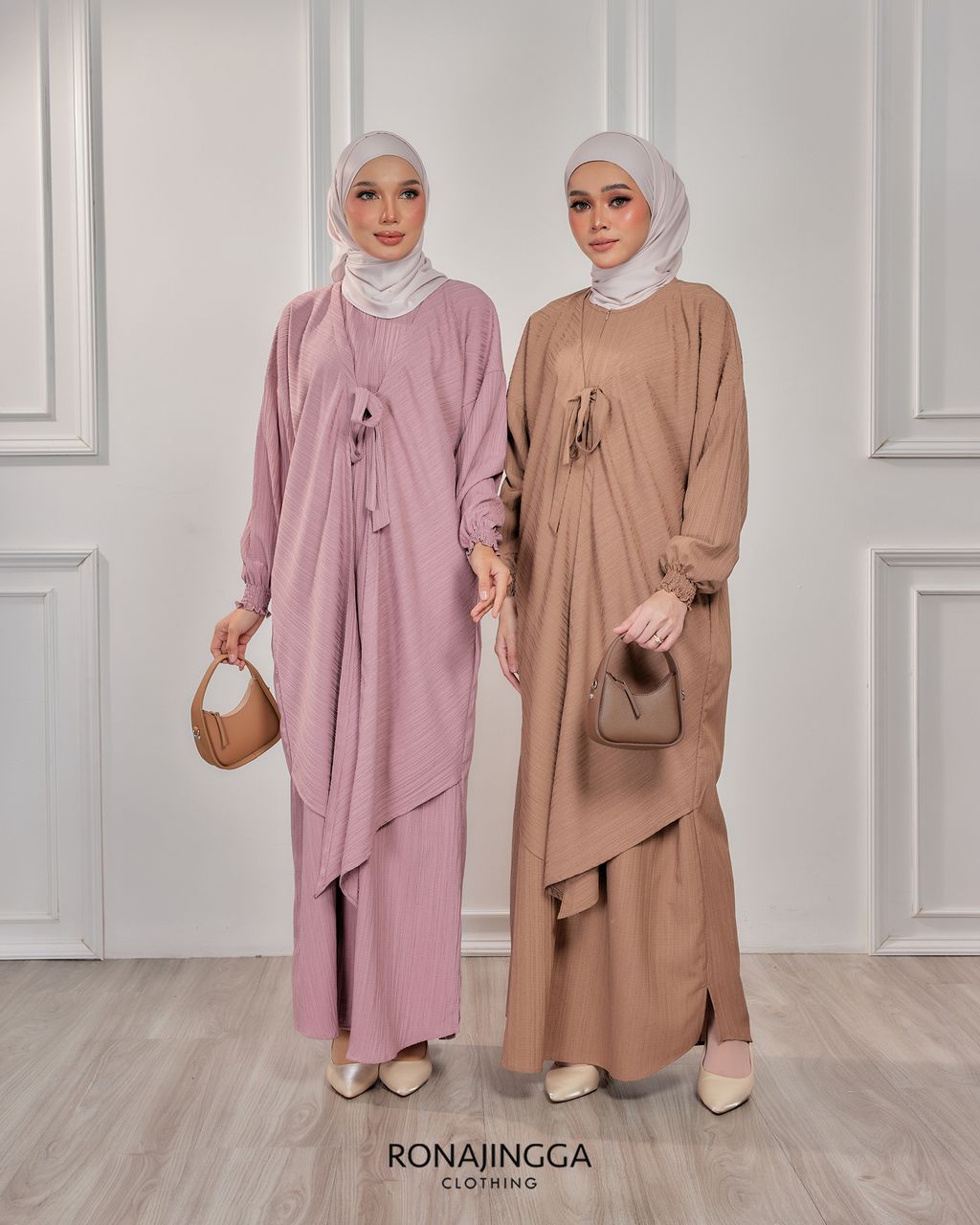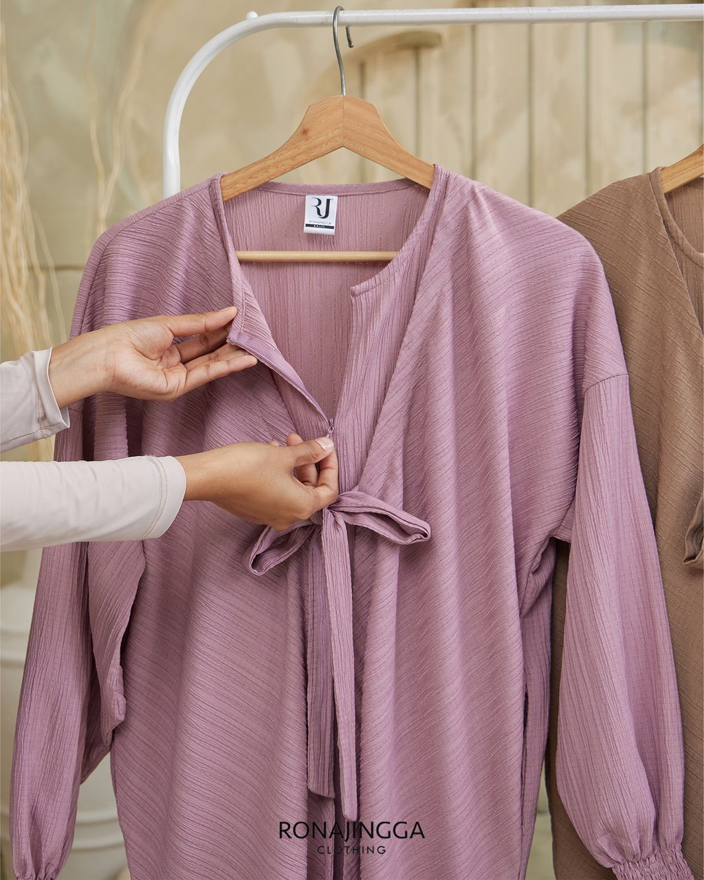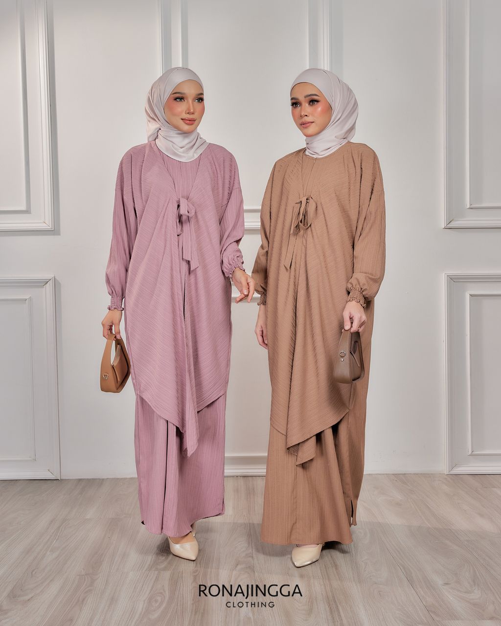It features with one large side pocket and whudu' friendly setchable sleeves. Thus, the cuffs of the sleeves can be pulled up that is wuduk' and dish washing friendly. It is super comfy and breathable, comfy to wear from day to night.