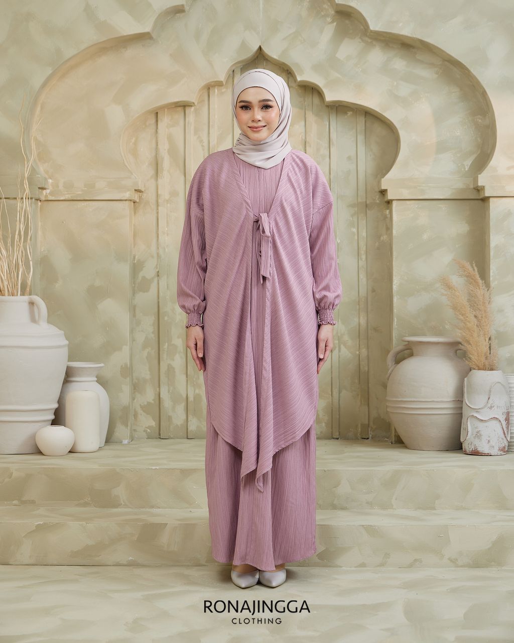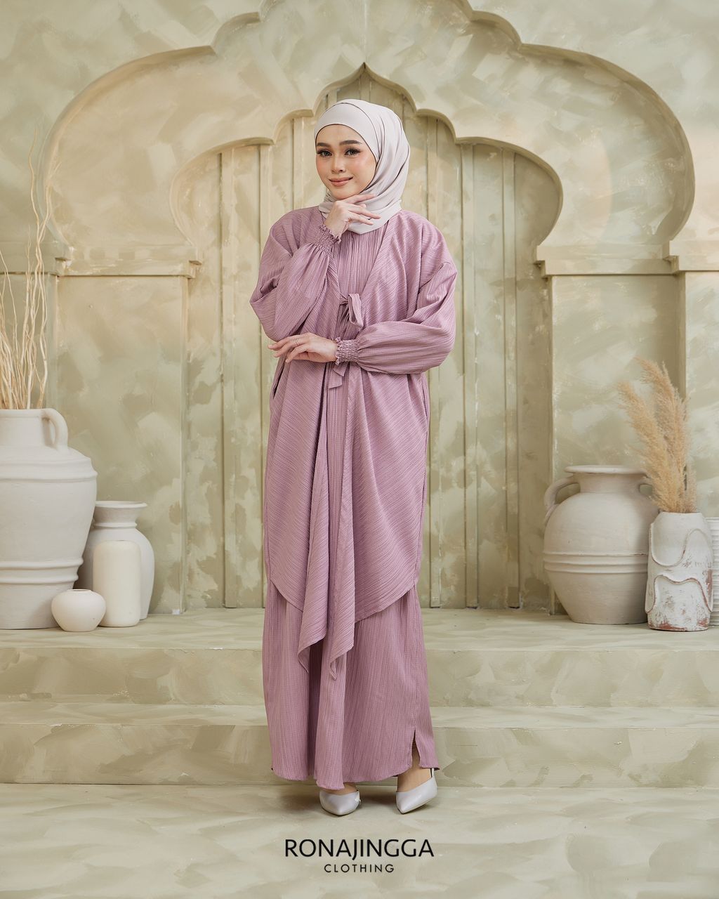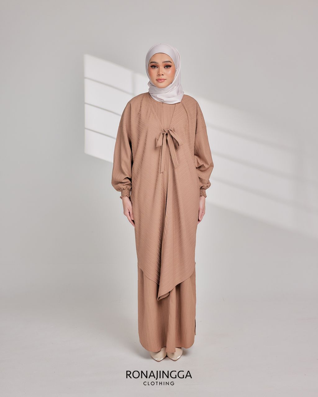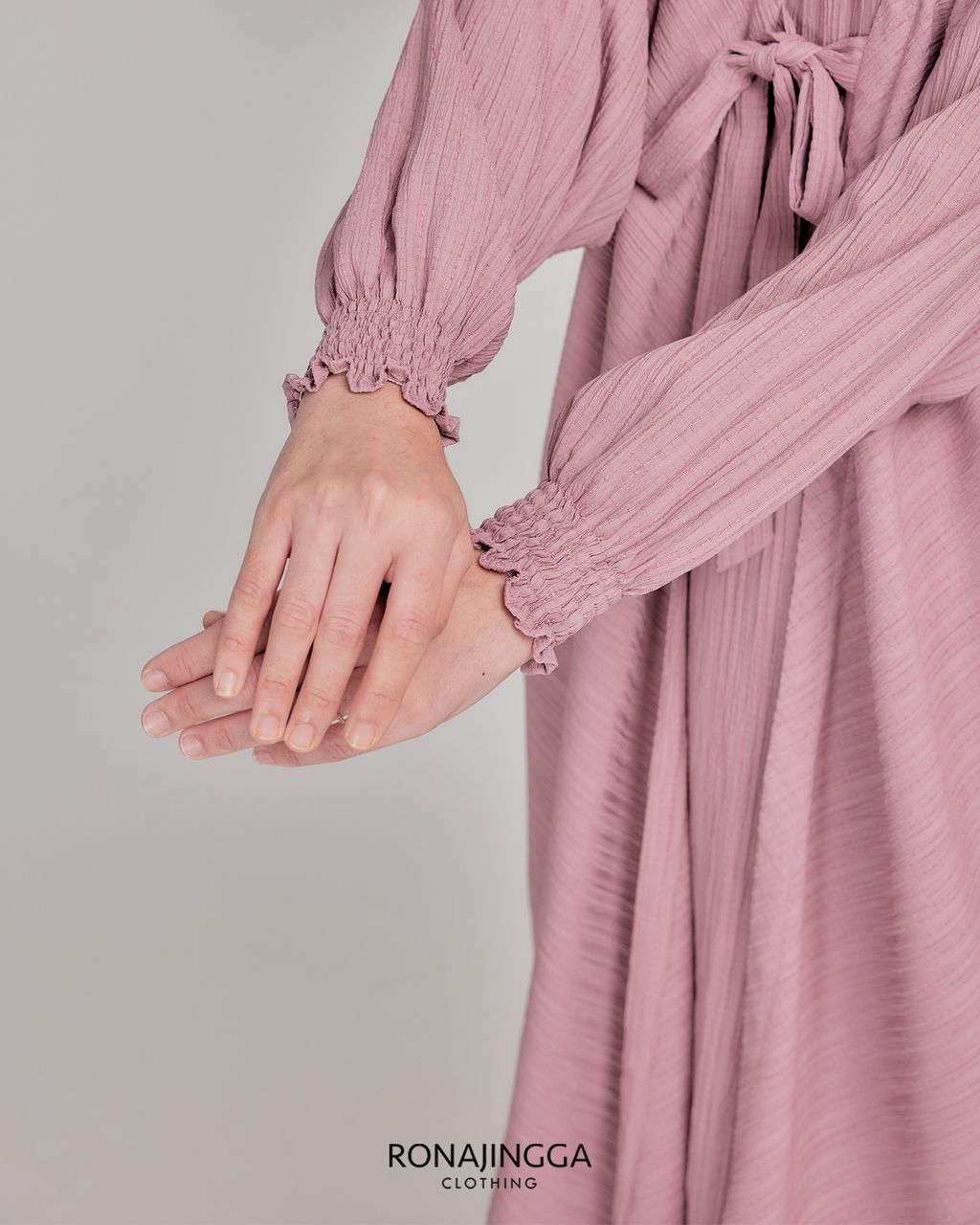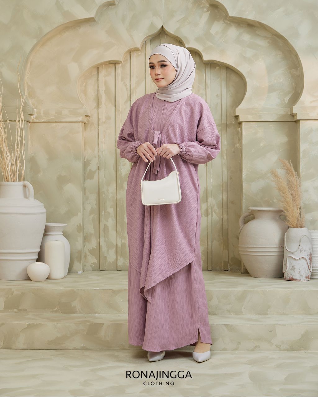 It features with one large side pocket and whudu' friendly setchable sleeves. Thus, the cuffs of the sleeves can be pulled up that is wuduk' and dish washing friendly. It is super comfy and breathable, comfy to wear from day to night.