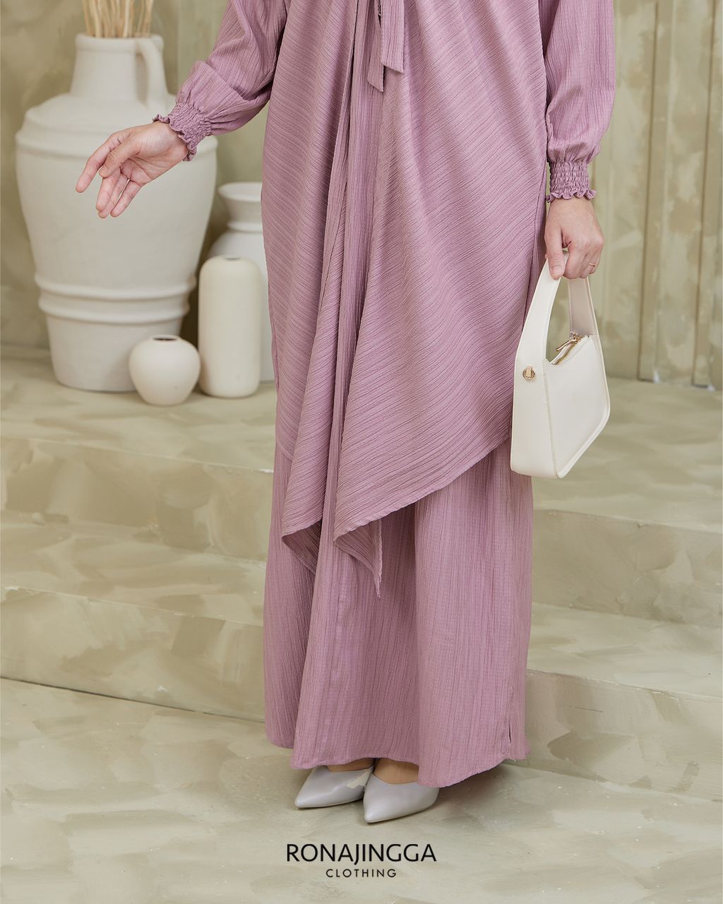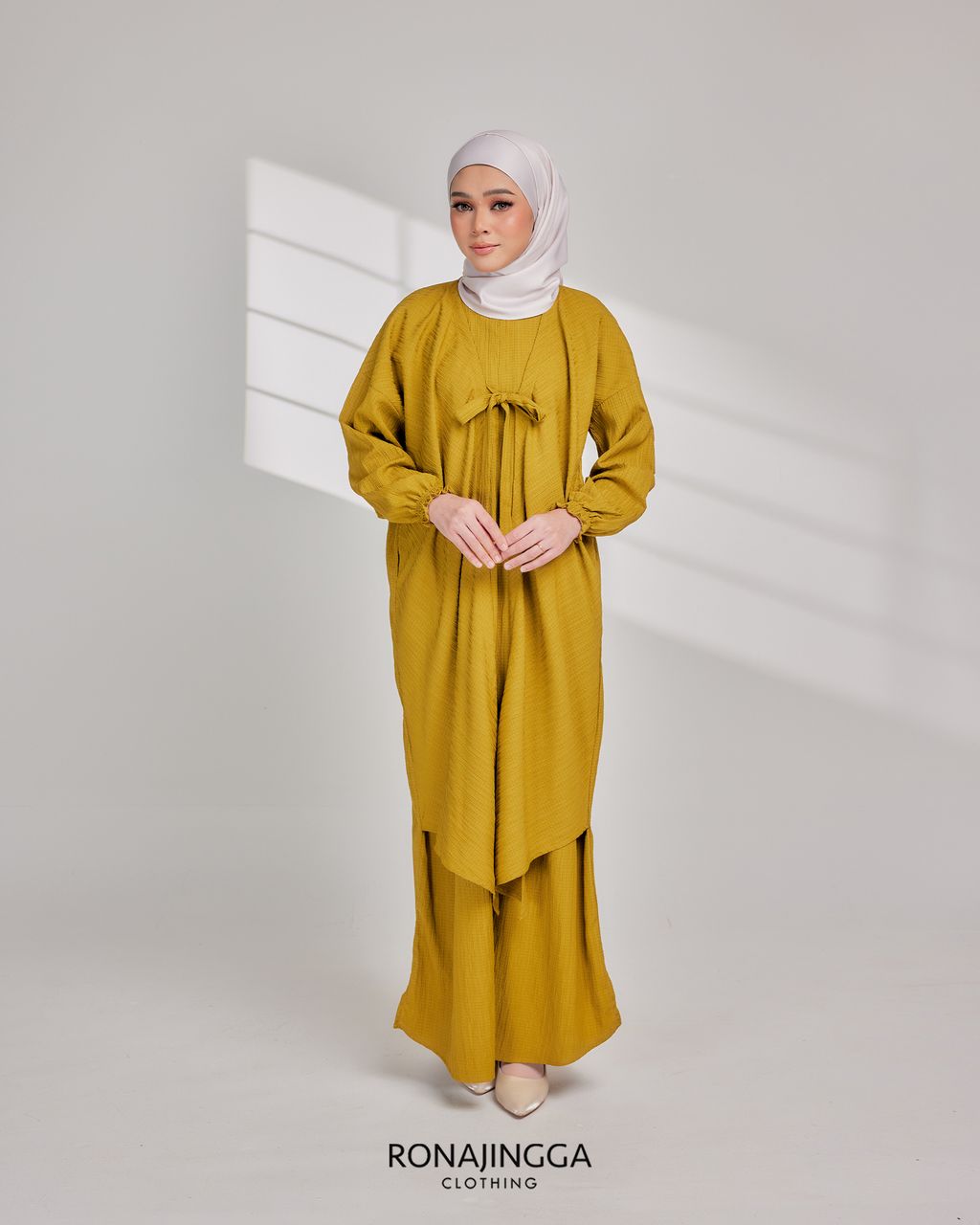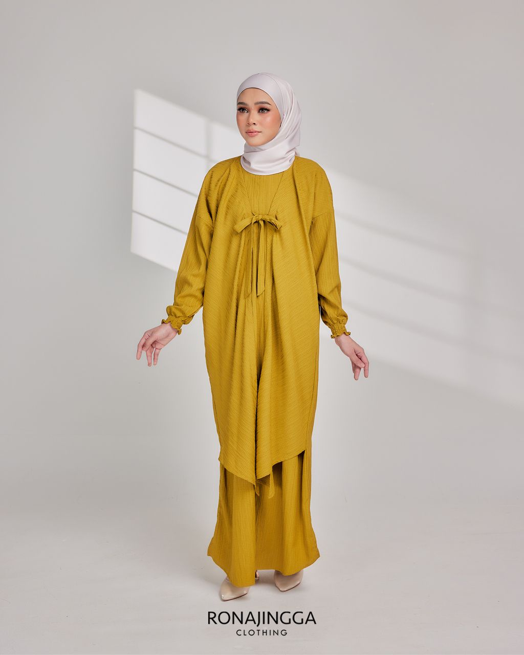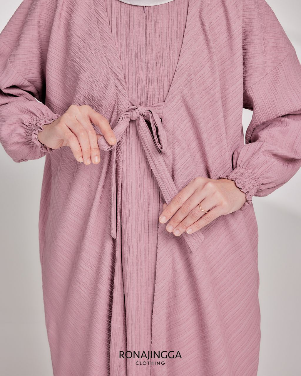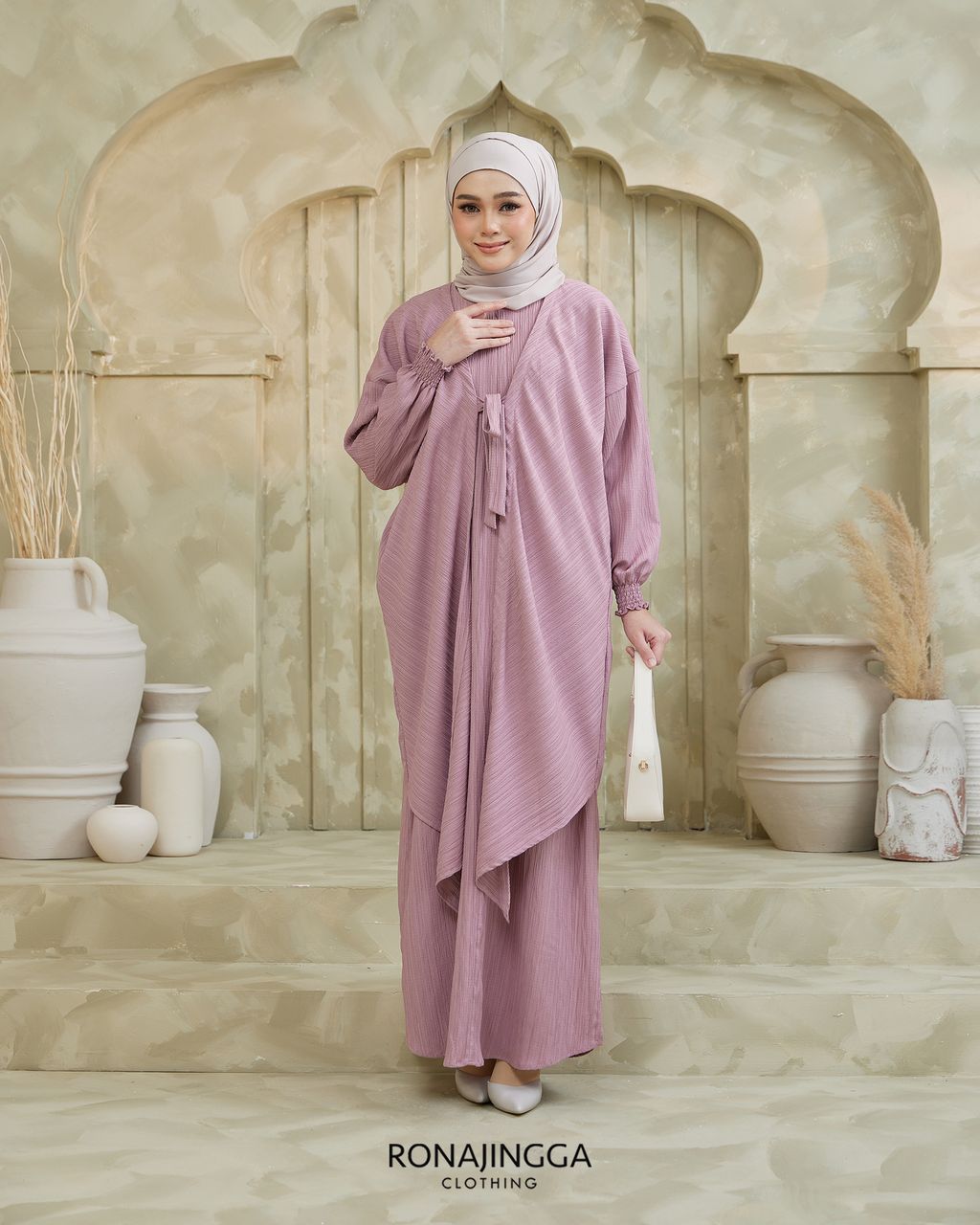 It features with one large side pocket and whudu' friendly setchable sleeves. Thus, the cuffs of the sleeves can be pulled up that is wuduk' and dish washing friendly. It is super comfy and breathable, comfy to wear from day to night.