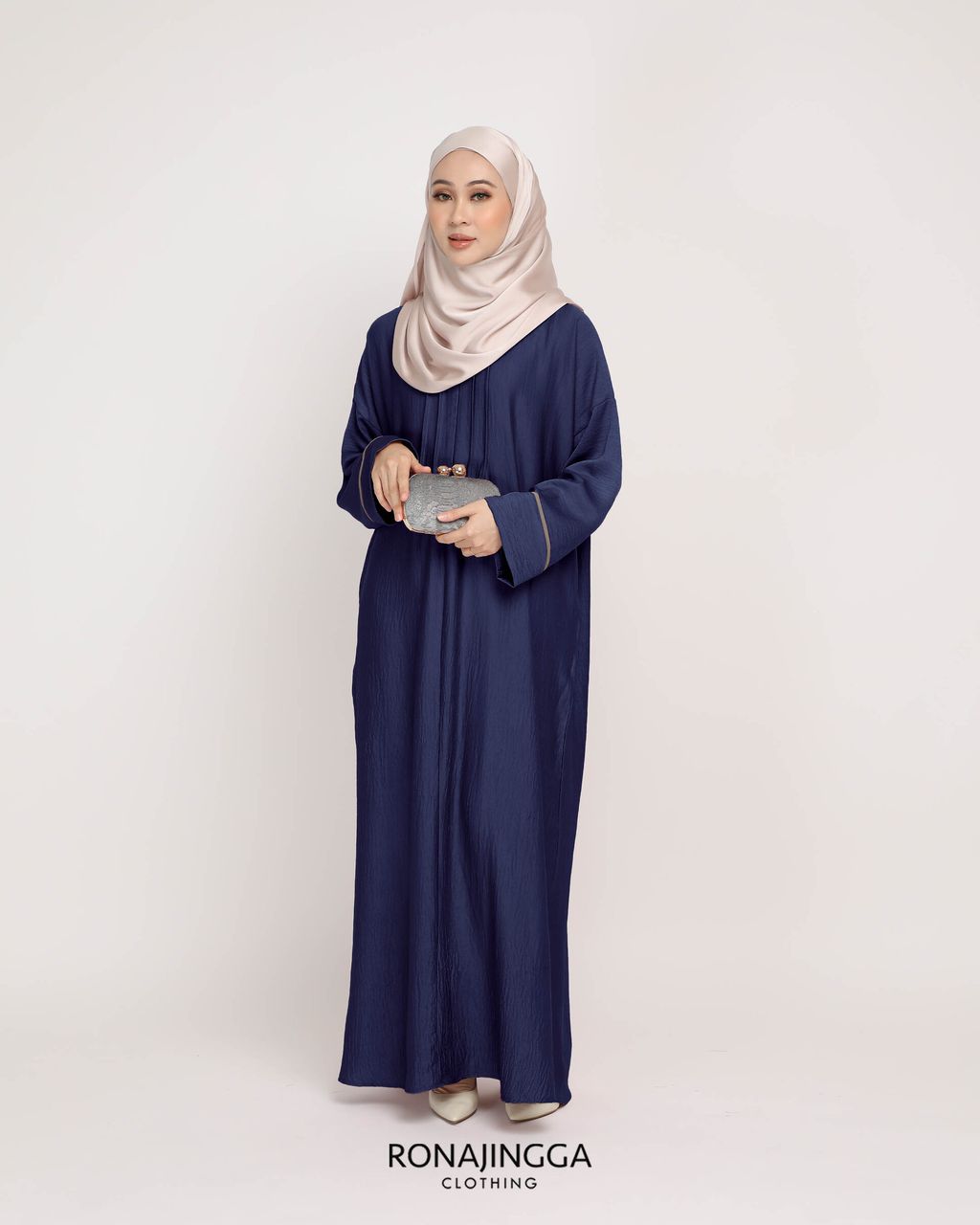 A classic bat wing cut loose kaftan with unique front pleated detailings & one large side pocket. The kaftan is design beautifully with whudu' friendly wide sleeves with minimal contrast colour piping end detailings for an elegant touch. It is flowy and gives a modest elegant look. It is also a Pregnant Mommy and Nursing friendly kaftan with (hidden zipper) for effortless breastfeeding.