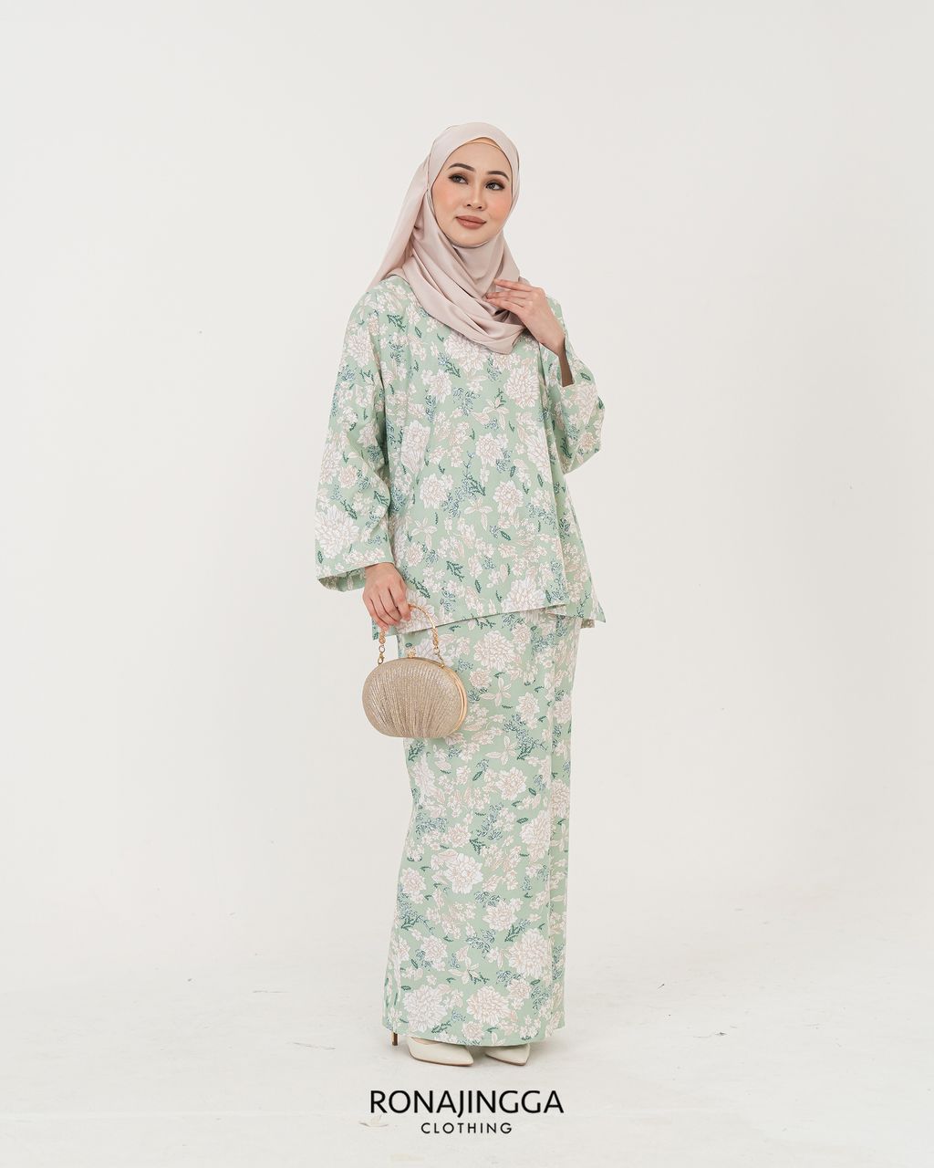 The top is a loose cutting design with side slits that can easily be pulled up for breastfeeding. Thus, the skirt of the kurung is a beautifully cut front overlap skirt (kain selisih) with side pocket that gives a sleek look and comfortably easy to move without showing off your feet.